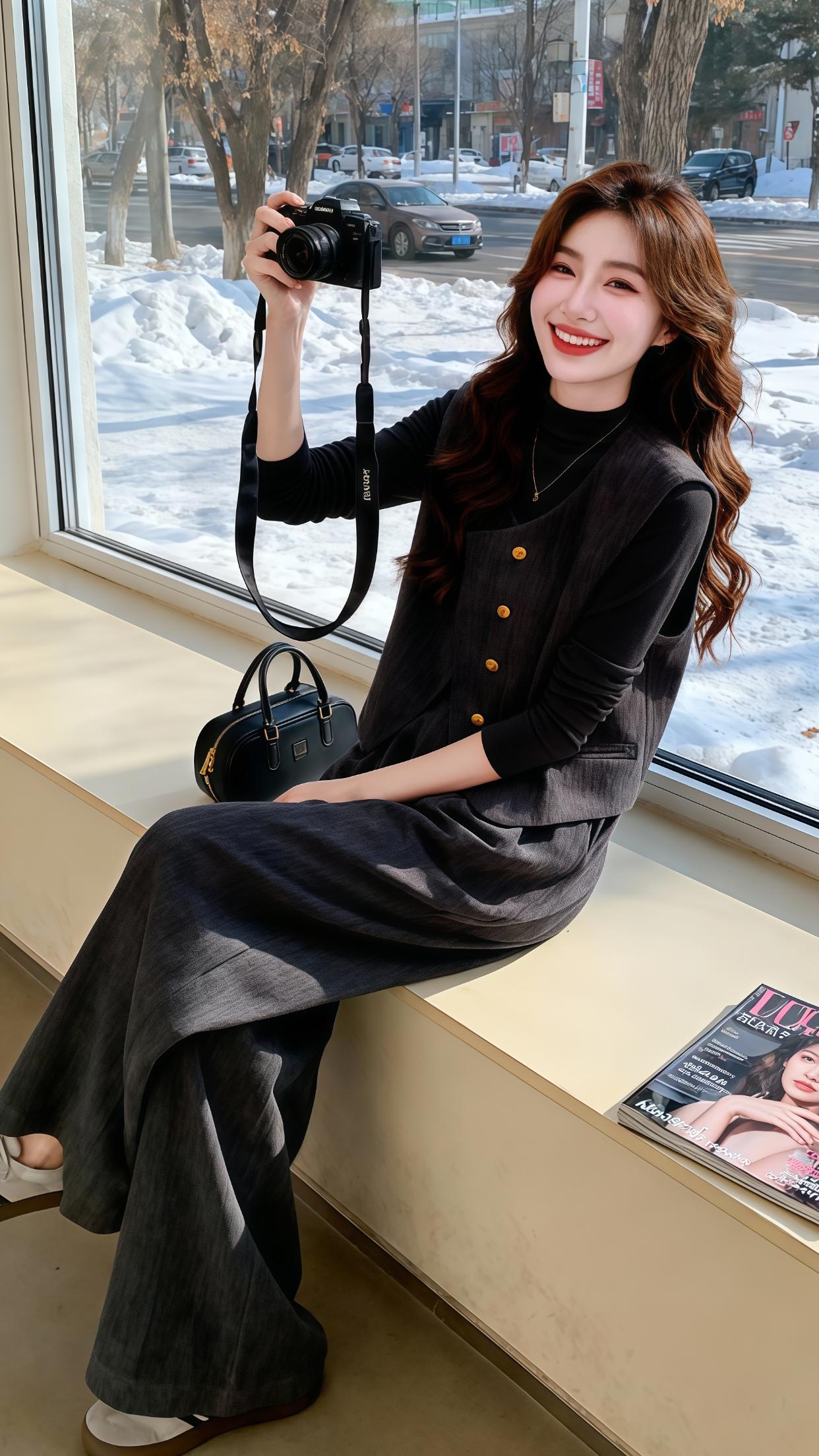 优雅漫步在复古街巷,手提包与冬日穿搭完美搭配。