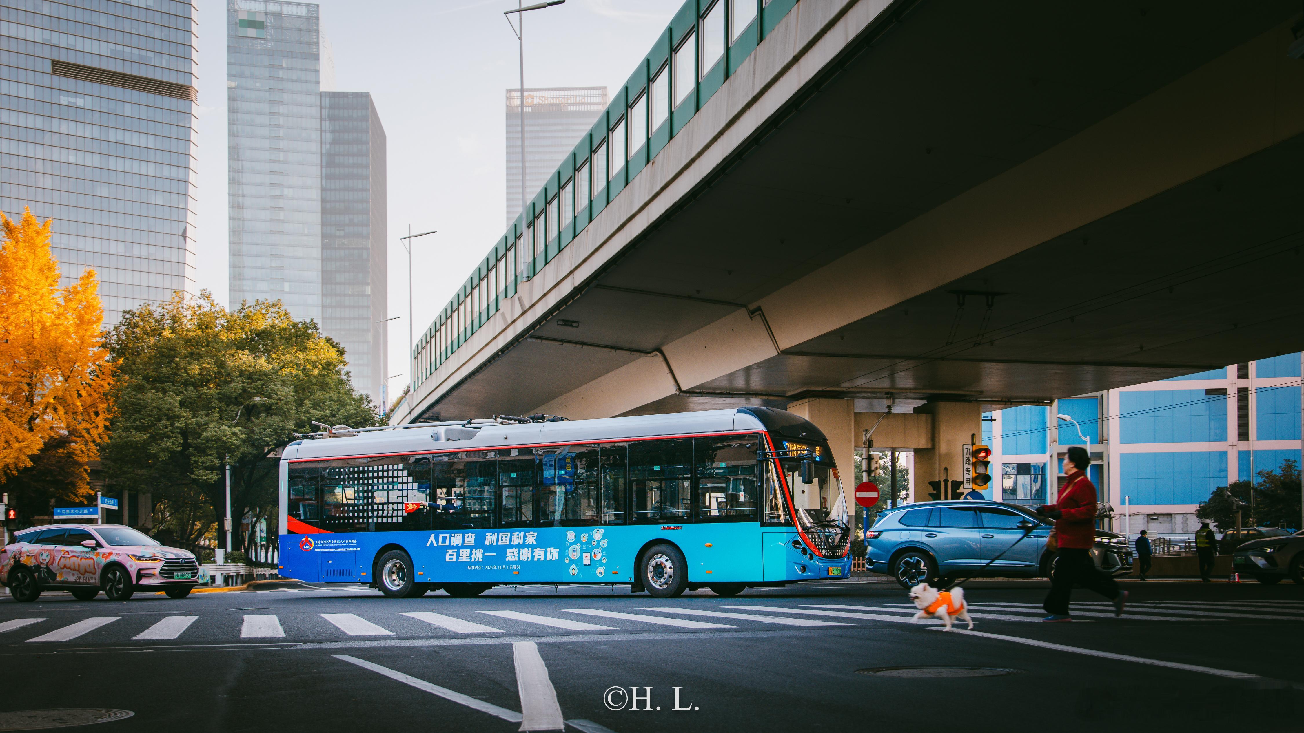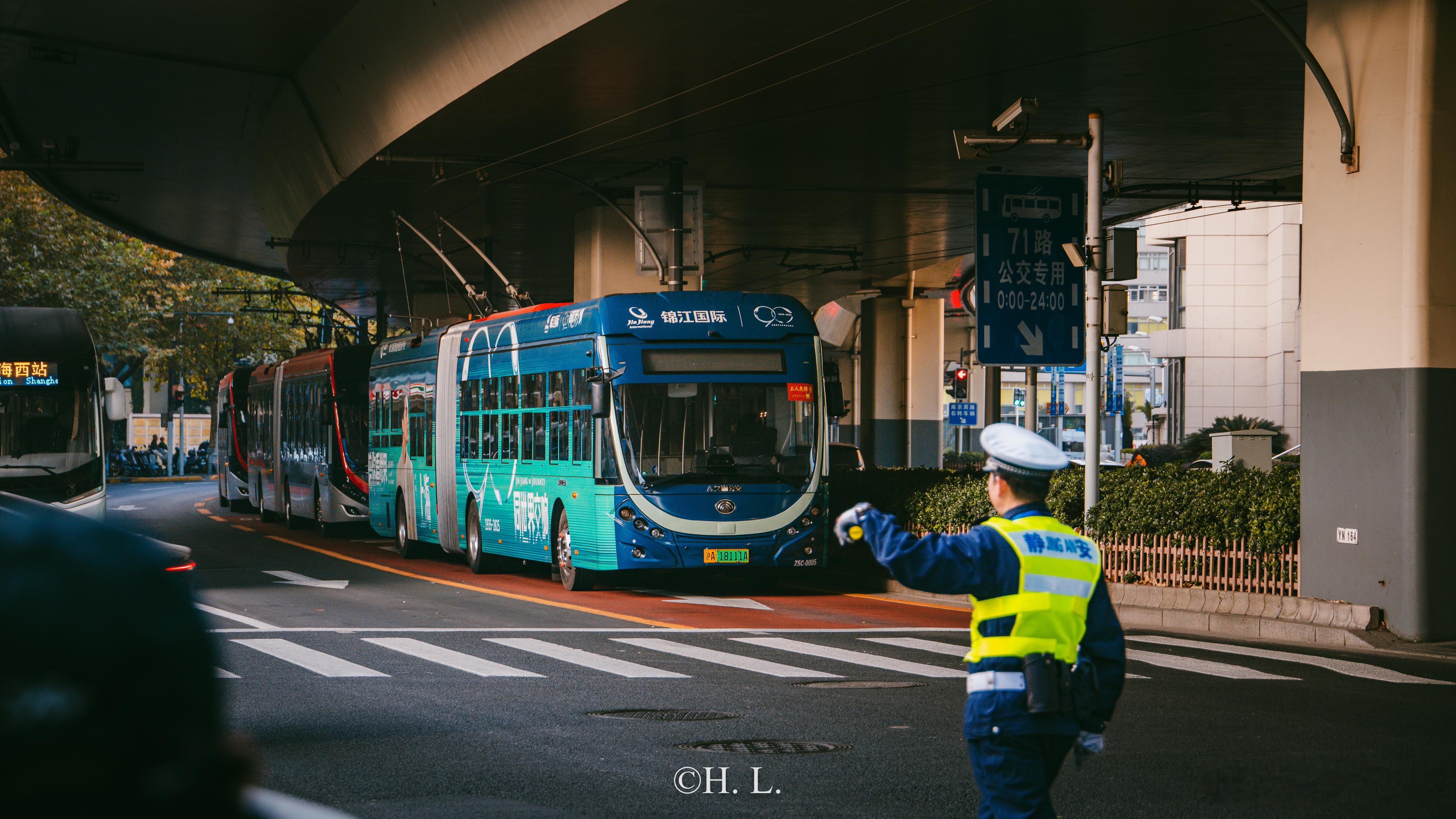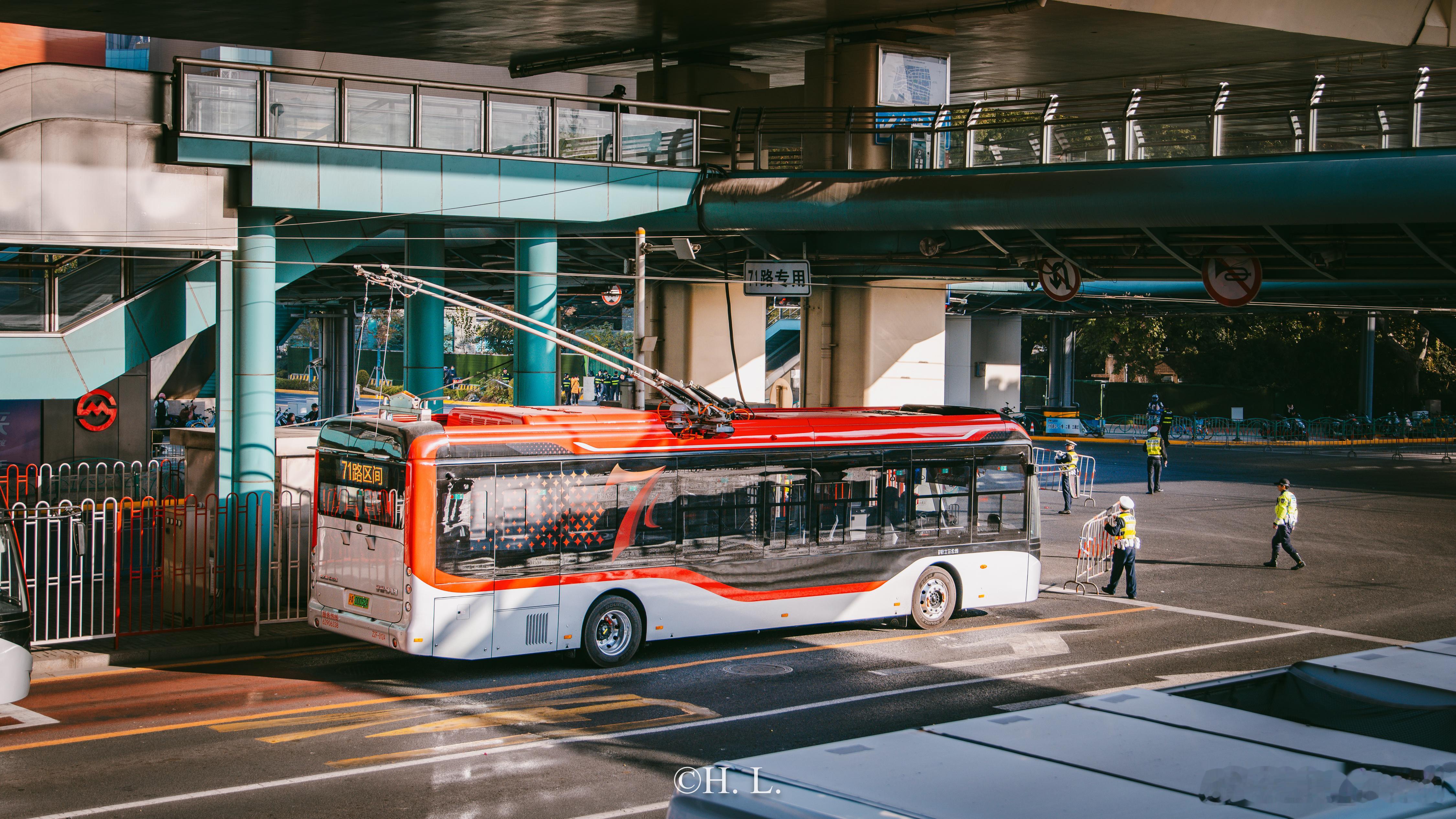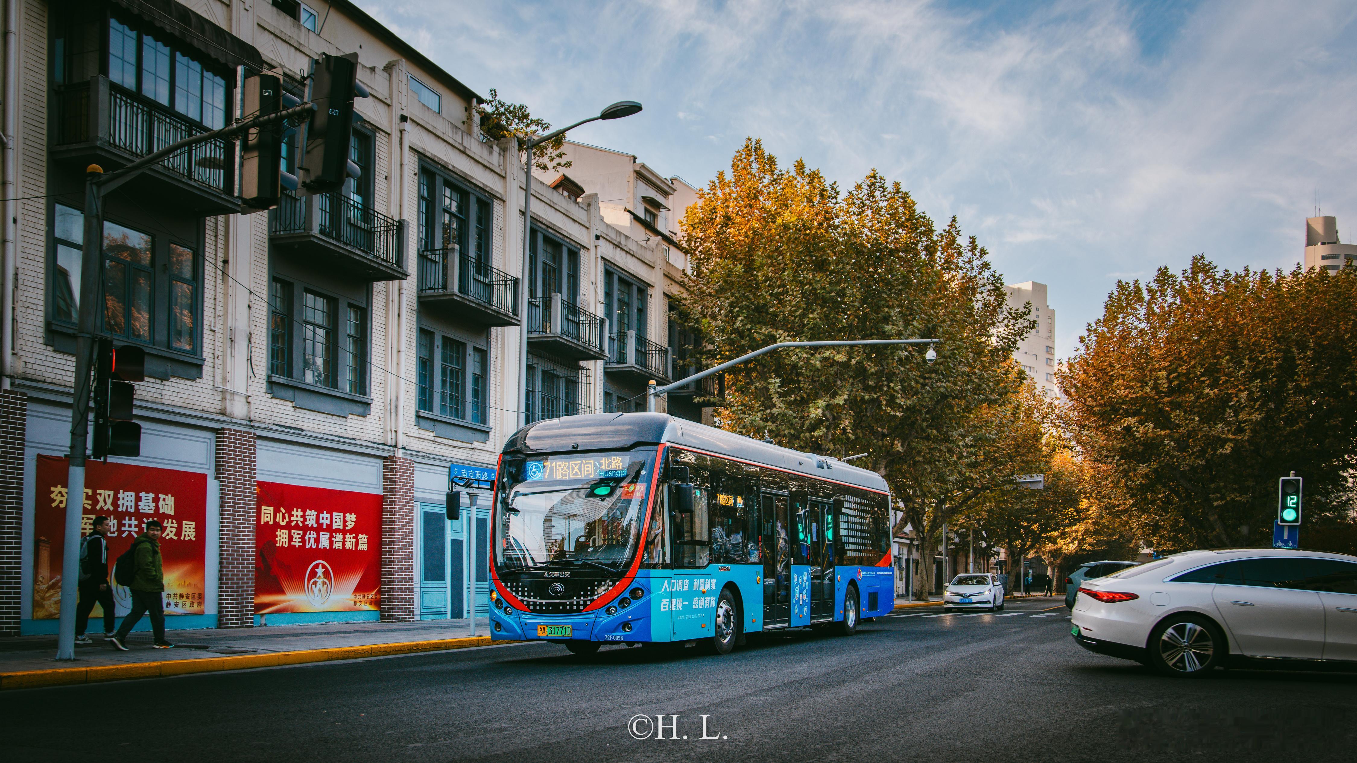11月30日2025上海马拉松期间的电车(II)来到每年必被碰停的71路无轨电车,今年马拉松最大的不同就是71路和区间线路换新车了。另外,东向西碰停位置从去年的延安中路常德路口东移到常德路车站的位置。因为交管人员以为后面还有更多中运量电车,因此他们指挥71路缓慢移动到华山路口增加蓄车空间(图2 图3)。当然他们想错了,因为这个方向连上71路区间也只有4辆车。不过此处光线倒是真的不错。71路区间和此前的马拉松一样实施乌鲁木齐路口调头。(图4 图5 图6)71路西向东上行方向则恢复了2年前的乌鲁木齐路口碰停,不过有两辆车倒是在路口看马拉松跑者(图7 图8)上午8:35,道路解除管制,路口的71路贴花车迫不及待地想要冲出去。(图9 图10)由于今年交通管制时间较长,71路停靠点比较靠后,因此很难拍全解除管制以后71路鱼贯而出的场景。实际上一共有12辆巴士首尾相接地跑出来,只可惜阻挡的车流实在是太多了。(图11)