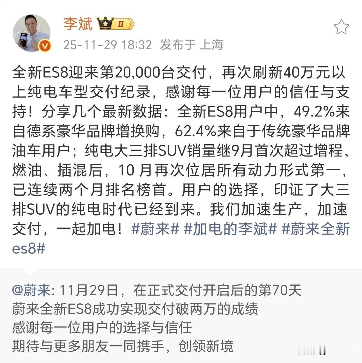 蔚来Q4能否实现季度盈利,很大程度上取决于ES8的产能。 今年的最后一个季度格外冷清,由于购置税等问题,传统的年底旺季预计在今年不会有了。前两天蔚来的财报展望Q4的销量指引比此前预期低了不少,不仅是蔚来,应该大部分主机厂都不会太好。 这时候ES8的重要性就更大了,能否把产能尽快拉上去,确保在手订单不会流失,就是接下来几个月最重要的事。