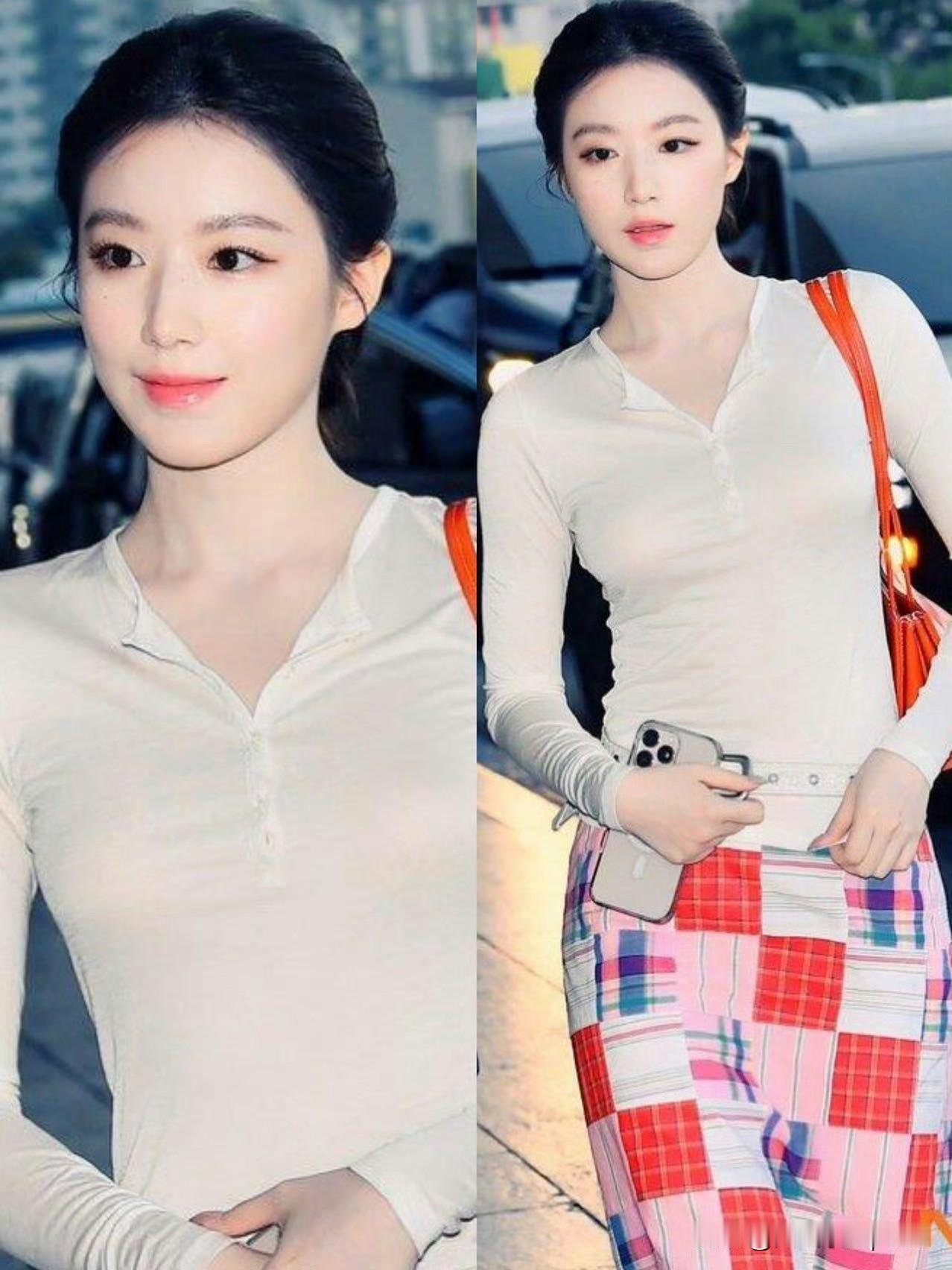 这身搭配把叶舒华衬得又温柔又灵动,好像那种气质好的舞蹈老师! 她这身紧身长白T搭配花色紧身裙,简单干净又不失亮点,麻花辫一扎,整个人显得特别邻家亲切。她私下那种不刻意、不讨好的松弛感,和这身装扮的气质完美契合,亮色包包一拎,瞬间提亮了全身,俏皮感一下就出来了。 叶舒华这身造型,真是把那种温柔又带点小个性的“清冷感”穿活了,让人越看越喜欢!