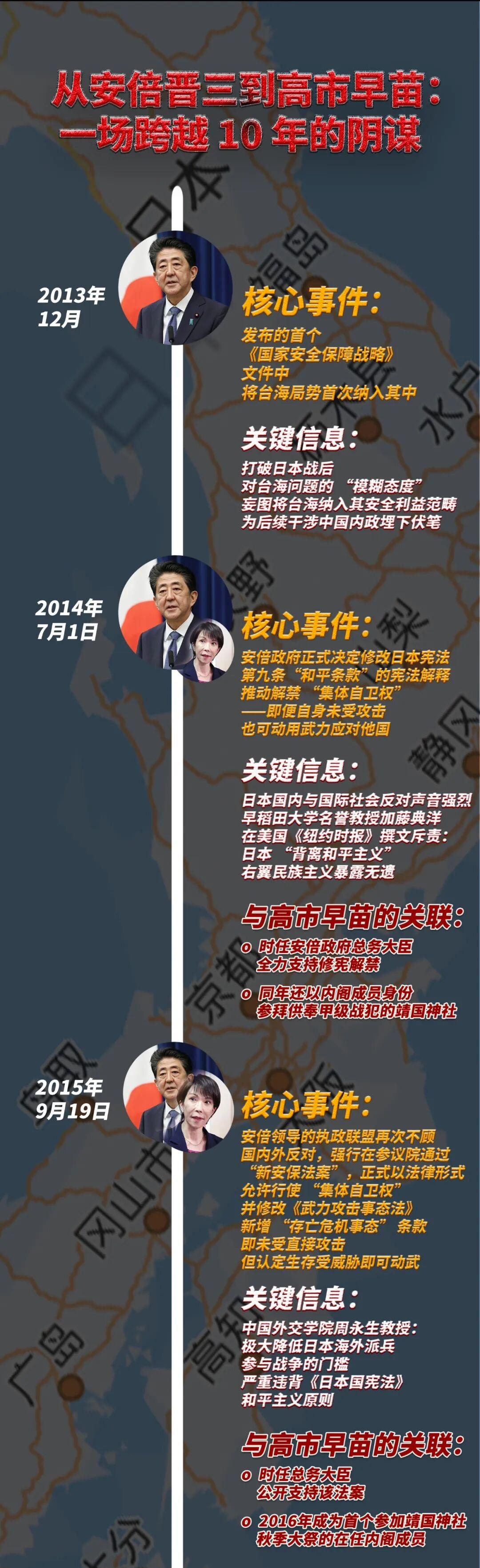 密谋终于被公开了,从安倍到高市,一场10年的阴谋:高市早苗的“黑历史”大家都了解一下! 高市的上位,就是靠着安倍晋三这棵大树,一点点往上爬成功的,外界认为,她就是安倍的门生! 安倍竞选自民党总裁时,高市出大力辅助其上位,随后被安倍安排入核心圈。 安倍坚决长期主张修宪、扩军,推动新安保法,解禁集体自卫权,什么“有事”这个说法,就是从他嘴里传播开来的! 高市继承安倍了的右翼思想,也主张修宪扩军,但立场更为极端。在历史认知、军事上甚至超越安倍。比如突破“无核三原则”,拟删除“不引进核武器”条款,并计划发展核动力潜艇,美化侵略历史,允许美军核武入日。 日本的派别认为,即使是“安倍在任时,都不敢如此表态”! 高市早苗被视为安倍晋三的接班人,高度依赖安倍的提携,专门为其承担“脏活累活”,通过这样的做法,博得右翼支持。 这就是安倍门生,高市的上位之路,他们的紧密关系,难怪如此猖狂! 但是,安被秒了,日方想保国的,赶紧自己去解决吧。