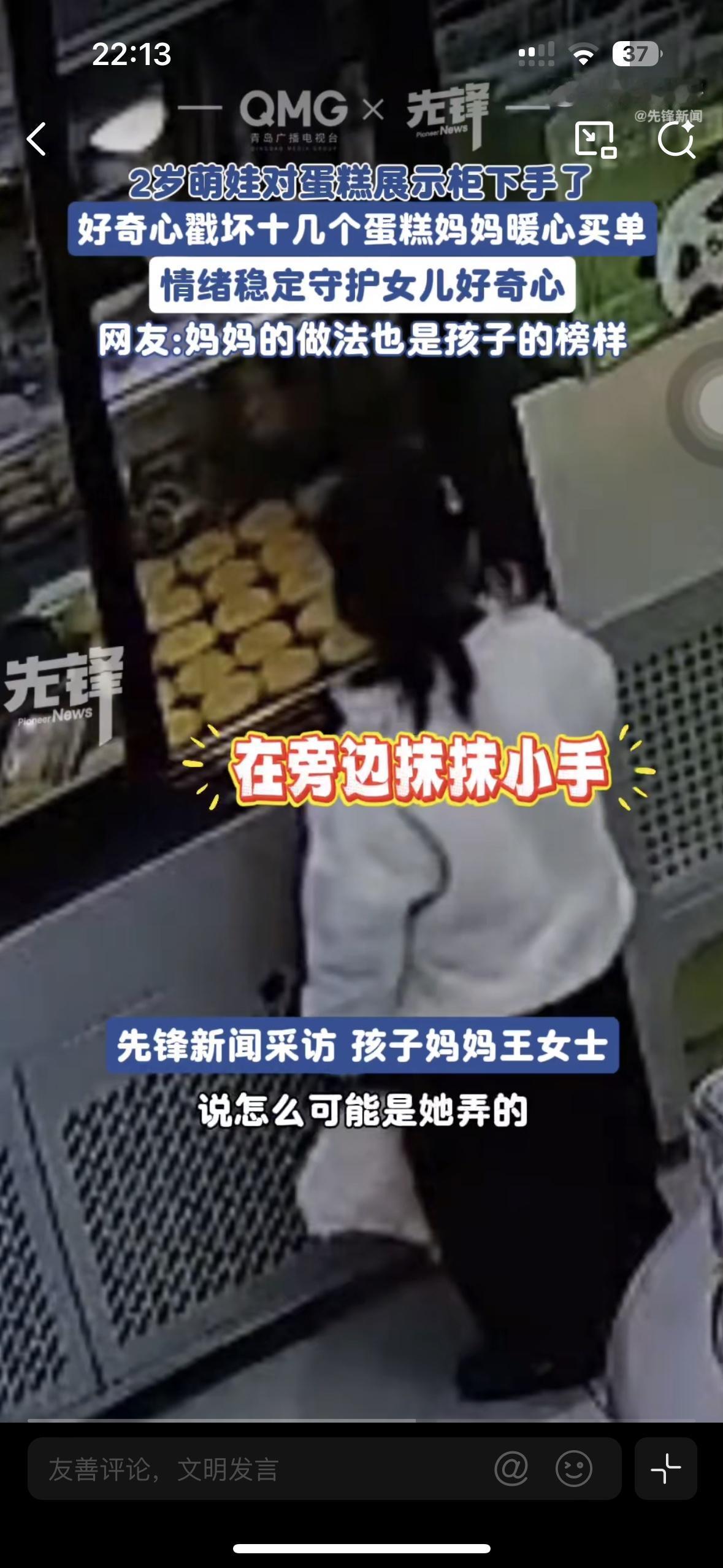 建议所有的家长都向这位妈妈学习 这样负责的态度怎么会教育不好孩子呢? 带着2岁半的女儿去买订蛋糕,结果女儿在旁边把人家做好的蛋糕们都戳坏了!在商家找到妈妈后,妈妈第一时间是觉得女儿没那么大力气,可当商家发了视频之后,妈妈主动为女儿戳坏的所有蛋糕都买了单 没有责怪女儿,毕竟女儿才2岁多只是发育的好个子大,保护了女儿的好奇心,也主动承担责任!家长是孩子的第一任老师,有这样责任心的妈妈孩子也会被教育的很好