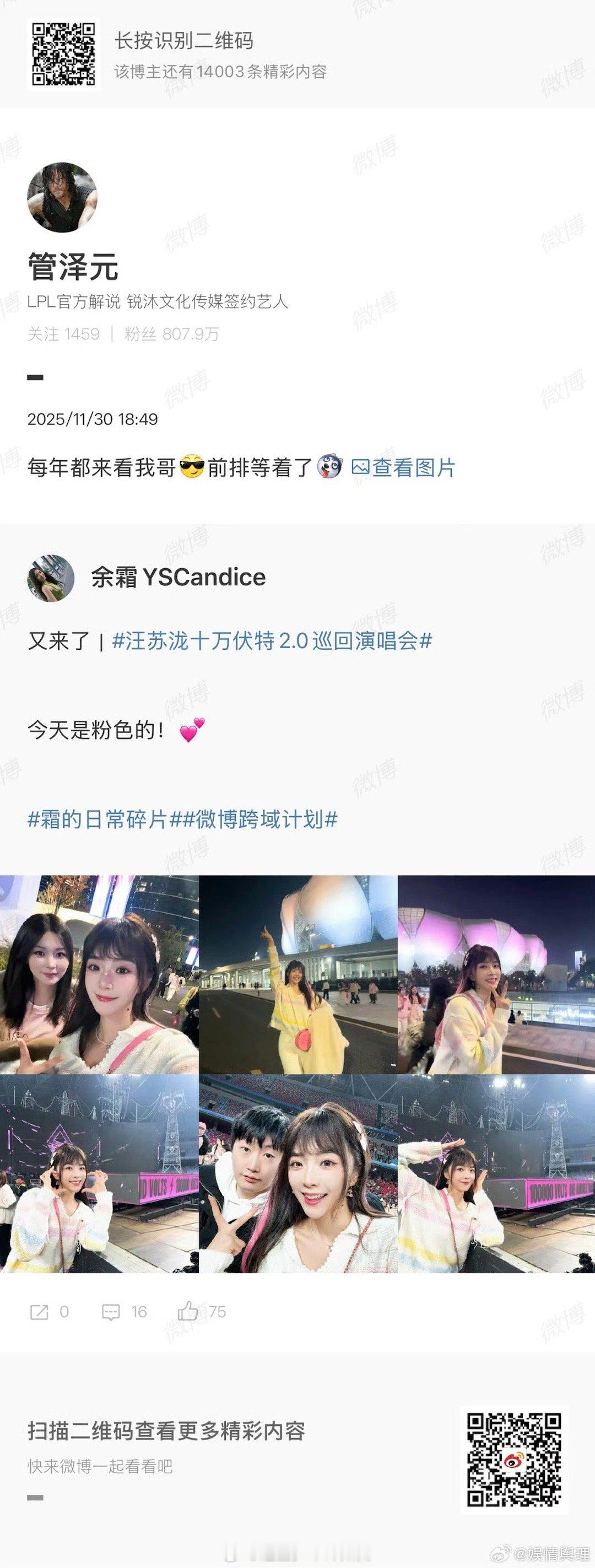 余霜管泽元又来看汪苏泷演唱会 浪漫的尽头是“罗曼城”!余霜管泽元三年之约如期履行,在汪苏泷的歌声中定格年度甜蜜瞬间,这糖我先磕为敬!