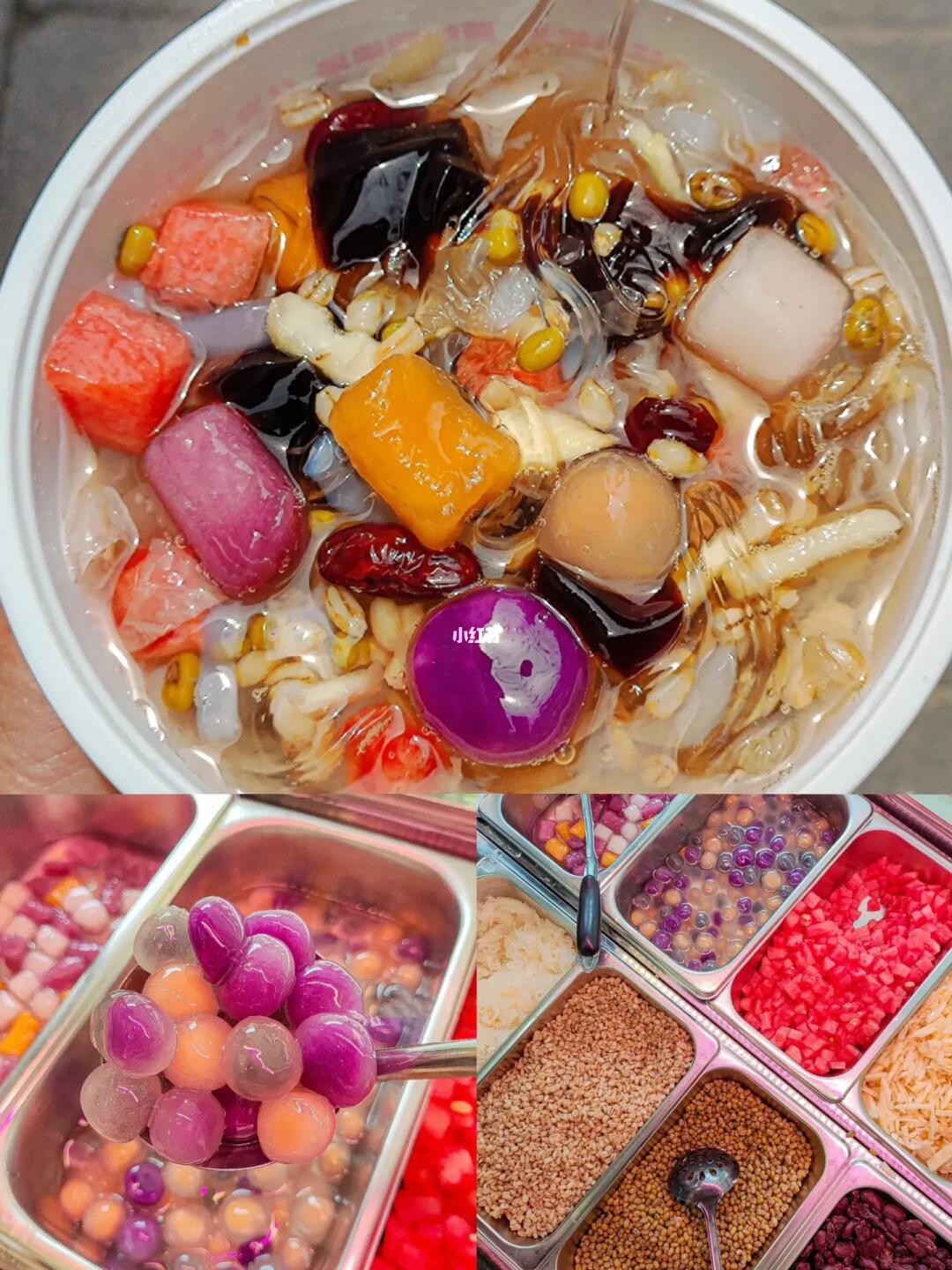 这道汤以四种水果为原料,分别是草莓、葡萄、西瓜和橙子,还配了冰汤圆和椰奶🥥