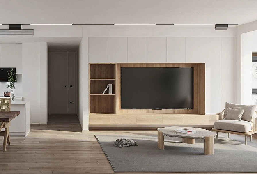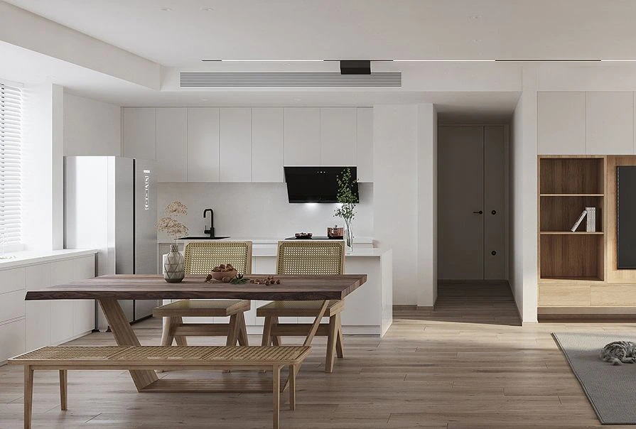 不得不说有些东西真是火有火的道理。。。这也太好看了。。美到我的心巴[色色R][色色R] 🔥客厅以白色为主要基调,无主灯设计让顶部大面积留白,视觉上拉升空间层高,让空间看起来更加立体~电视背景墙定制白色加原木配色的柜子,将电视嵌入到柜体内,整个电视背景墙显得简约而端庄~ 🔥餐厨一体化设计,中间用岛台做分割功能,餐桌椅都是实木材质,顶部搭配无主灯造型,搭配出一个端庄而简洁的用餐环境。 🔥厨房是一字型设计,白色的橱柜结合黑色的龙头浓淡相宜,整体呈现出一个宽敞干净明亮又不乏味的厨房~ 🔥卧室安装梦幻帘设计,摒弃复杂,大面积留白搭配灰色床铺营造一个自然舒适的卧室环境~卧室背景墙做拼接设计,但是颜色全部用的白色,增加整体空间的层次感,让空间显得简约~
