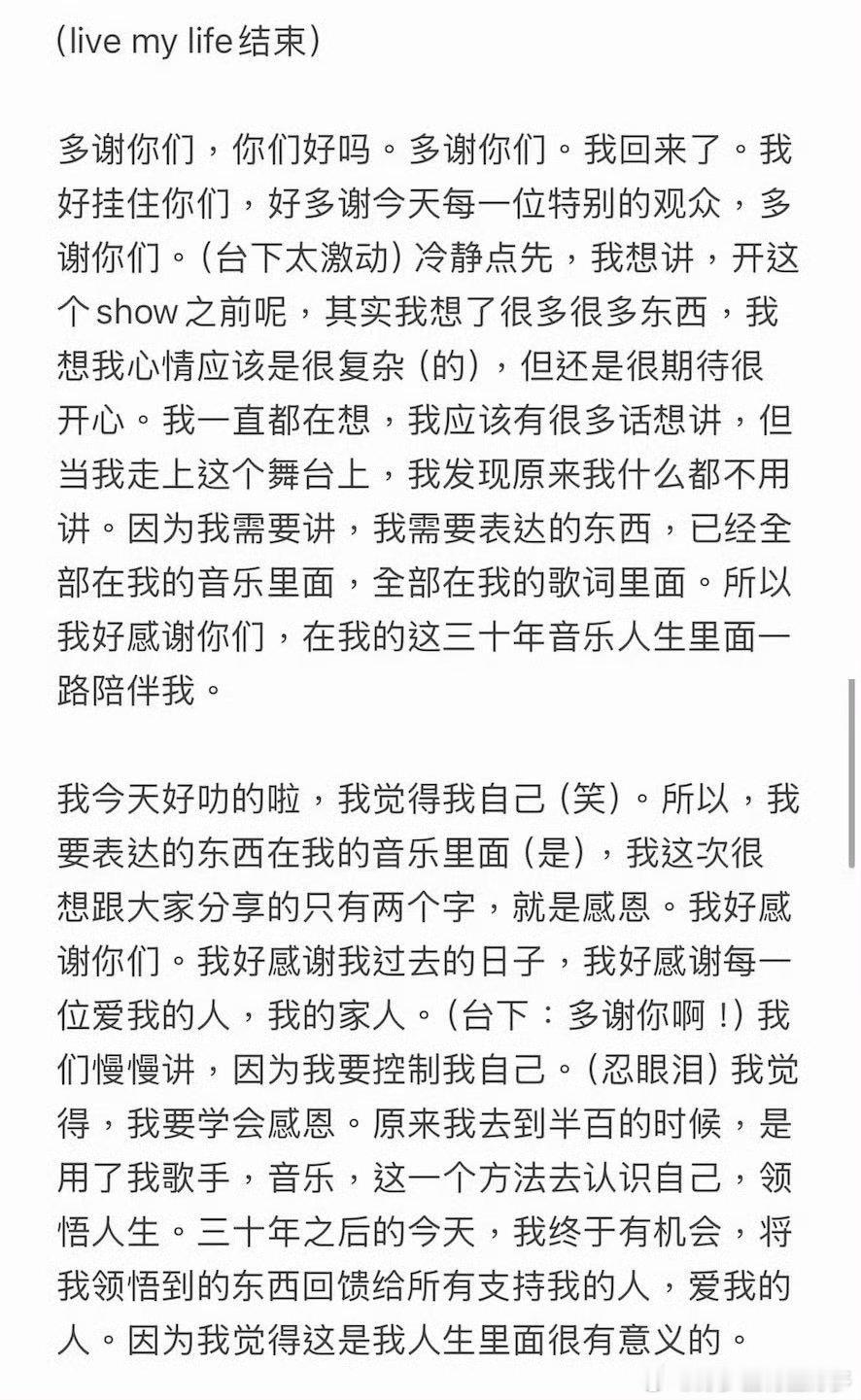 陈楚生说今天演唱会来了一个好兄弟,还说“爱你哟”。哈哈哈,一个喊生哥“冠军、上