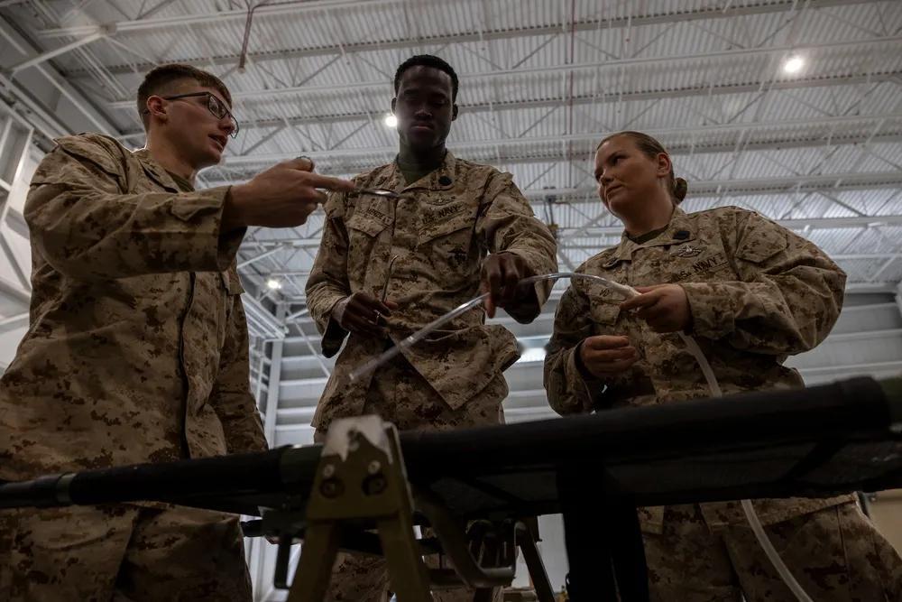 美军非常重视战场中“保命”,也就是伤员救治。 2025年11月7日,美国海军陆战队第11海军远征支队的海军陆战队员,亚利桑那州尤马海军陆战队空军基地的真实城市训练中搬运模拟伤员。RUT是一项基于陆地的训练演习,使第11海军远征支队能够作为一个整体的海军陆战队空地任务部队进行远征行动,为与美国海军的两栖作战做准备。