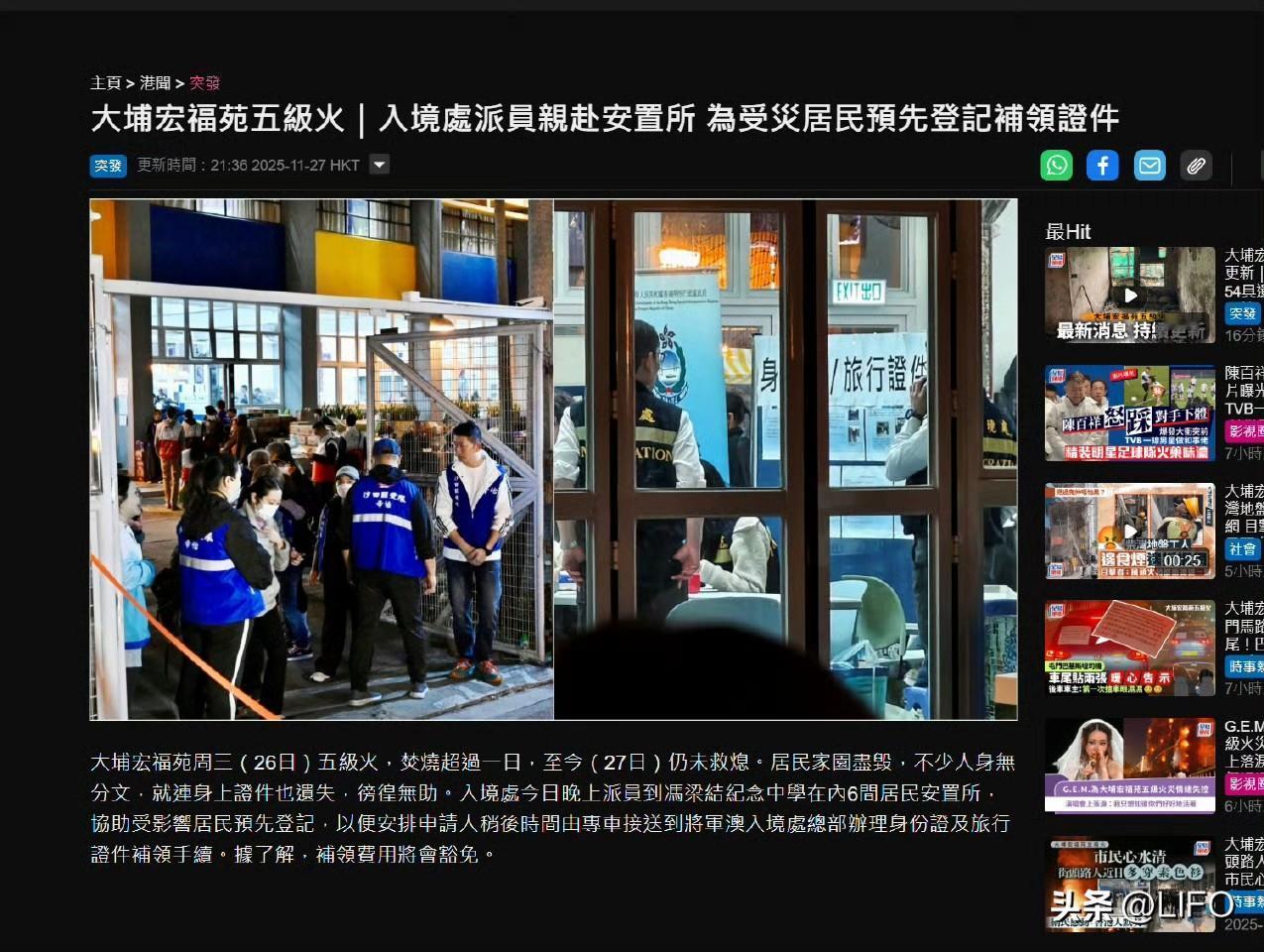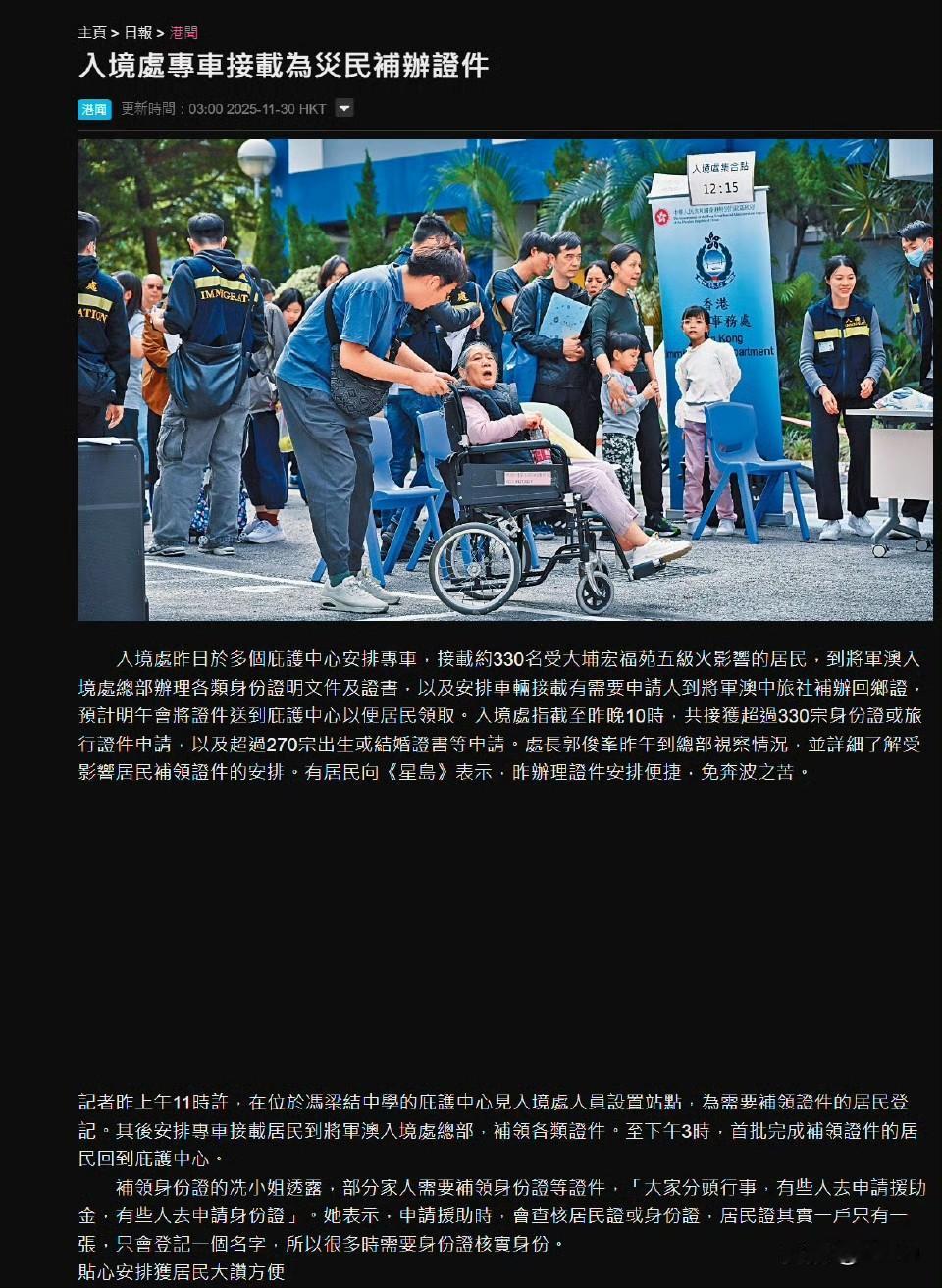 关于这次香港大火,国家金融监督管理总局11月29日发布通知,指导银行业保险业全力做好香港大埔火灾的金融保障服务等工作,高效查勘理赔,做好保险保障服务,加强金融信贷支持,积极助力受灾重建。已有约1500名受影响居民入住特区政府安排的安置住宿,过渡性房屋可供居民长期居住,也不用交租。看病有全面支援他们的基层医疗需要,费用全免。基层医疗署亦会统筹不同医护专业人员,为经地区康健中心/站转介的受影响居民提供特殊医疗、护理和药物服务,以及心理支援。受影响居民可通过热线电话或电子服务进行登记,无需亲自前往中心。入境处上门登记,专车接送办证件,费用全免。线下串联的黄丝也抓了。这次反应,总的来说还是很快的。