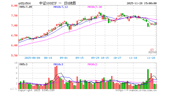 11月28日,中证500ETF(510500)涨1.21%,成交额12.61亿元。当日份额增加4120.00万份,最新份额为184.05亿份,近20个交易日份额增加600.00万份。最新资产净值计算值为1313.46亿元。