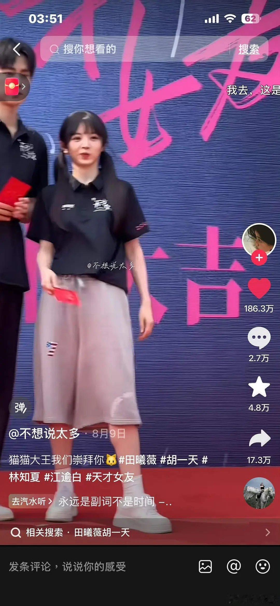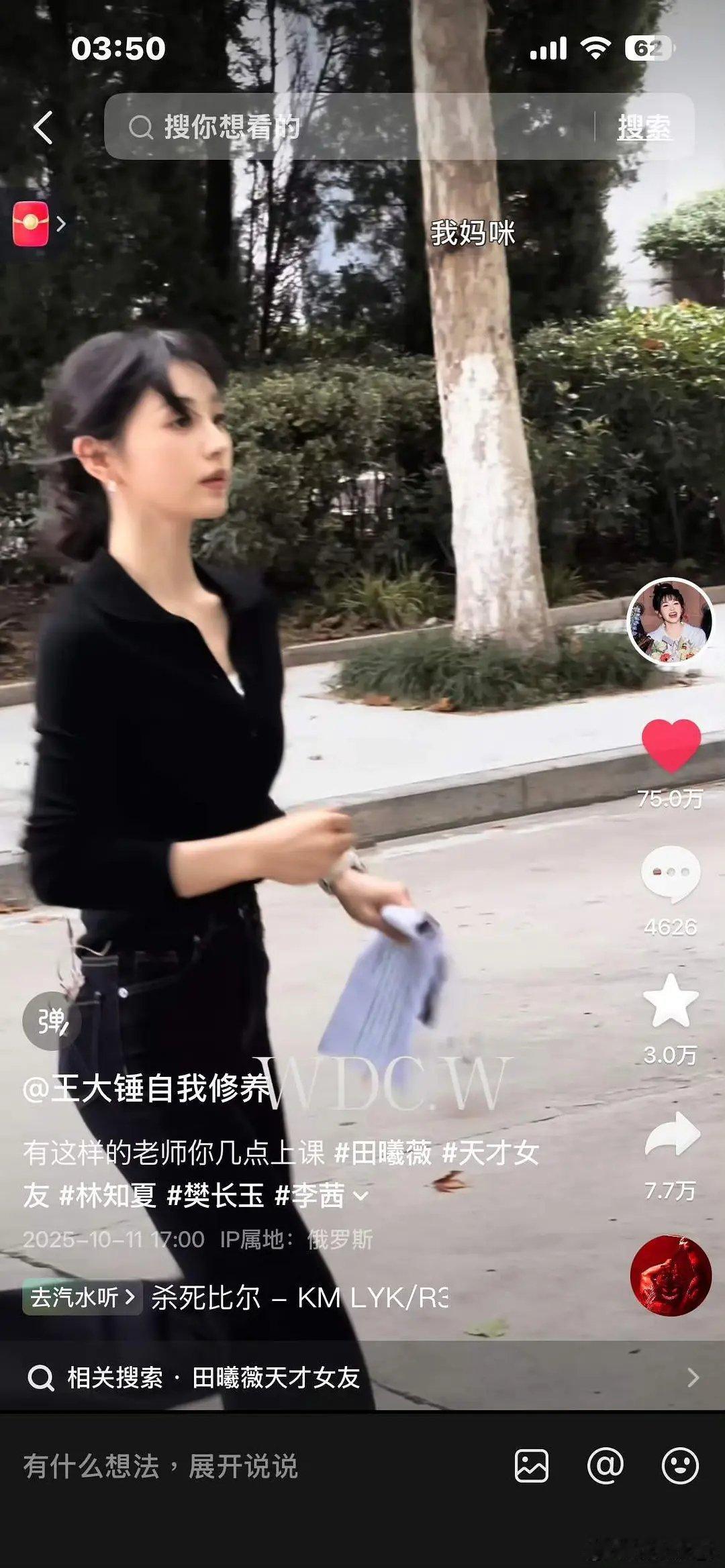 田曦薇天才女友的抖音数据居然还挺不错的