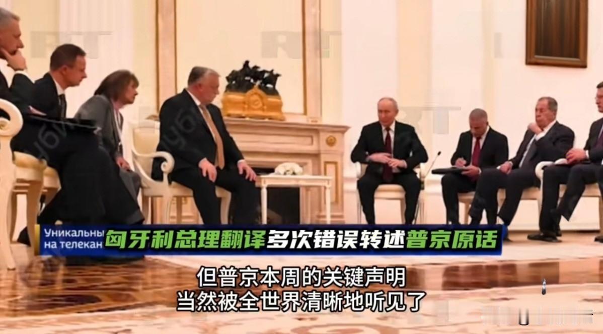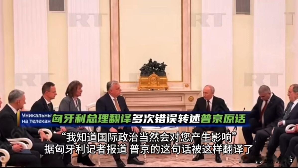 “状态不佳”的总理翻译! 据今日俄罗斯(RT)报道,11月30日,俄记者扎鲁宾在社交媒体发布视频表示,俄罗斯总统普京与到访的匈牙利总理欧尔班在克里姆林宫会晤期间,欧尔班身旁的女翻译多次错误传达了普京总统的原话,从而淡化了普京总统对乌克兰问题和双边关系的表态。例如,普京对欧尔班说,“我们了解您对乌克兰问题的审慎立场”,而欧尔班的翻译员直接错误表述为“我知道国际政治当然会对您产生影响”,匈牙利政界人士将这一错误归咎于翻译员“当天状态不佳”。 小民闲话:作为出国访问的总理翻译,多次向总理传达错误的表诉,用“状态不佳”能说得过去吗? 作为总理的翻译,应该是总理身边的人,如此表现,值得深思!