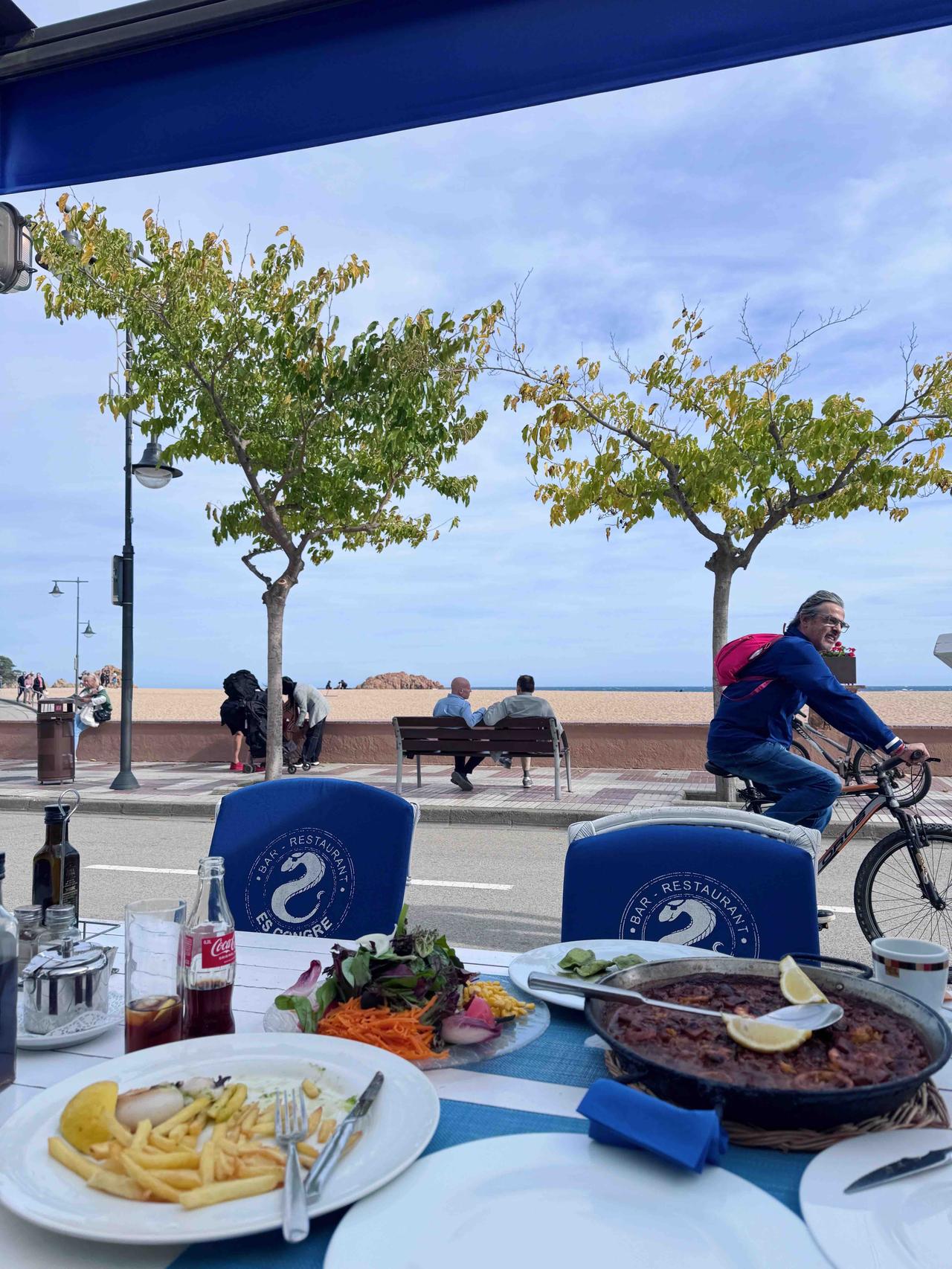 西班牙tossa小镇阴天风超大 但是也不影响这里的悠闲美丽 随便找了一家餐厅 景区里的西班牙海鲜饭真的很难吃🥲