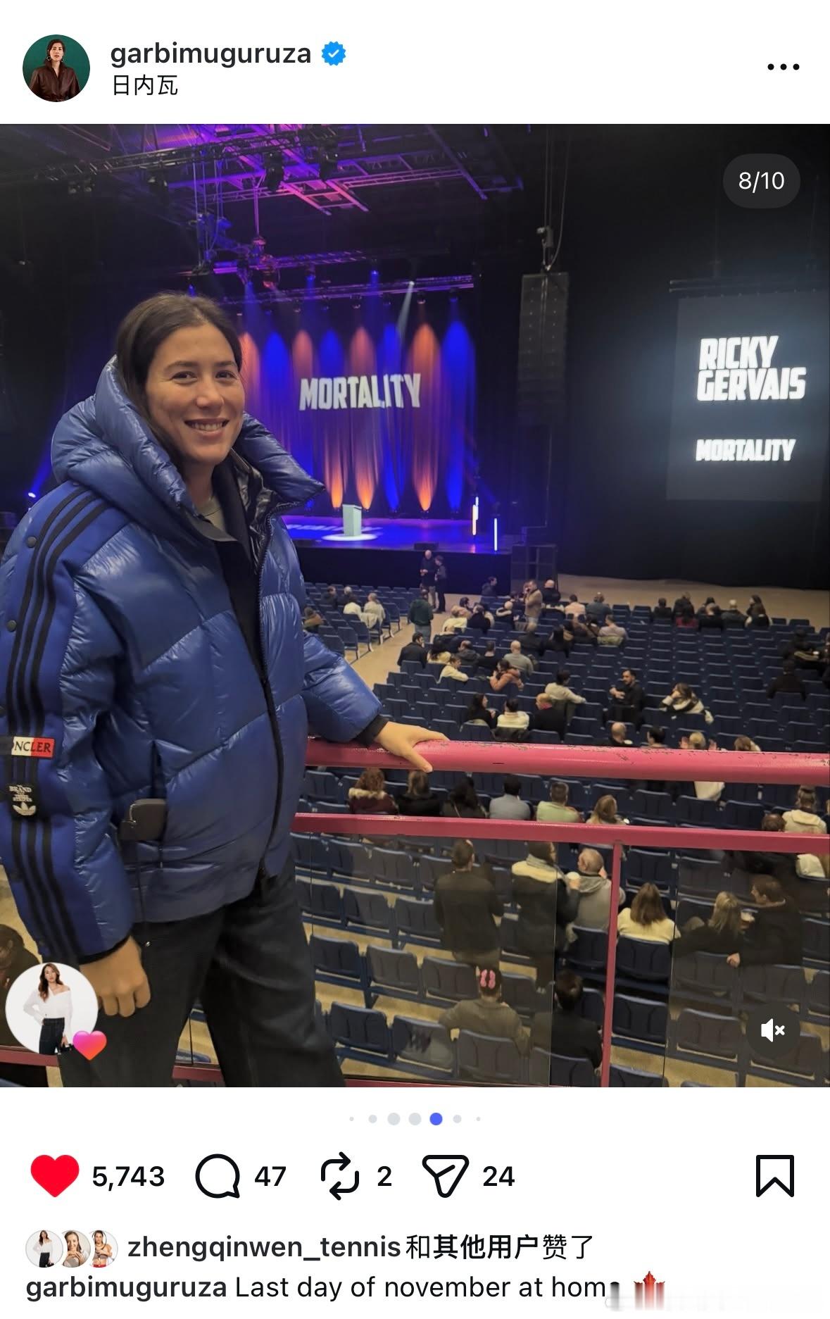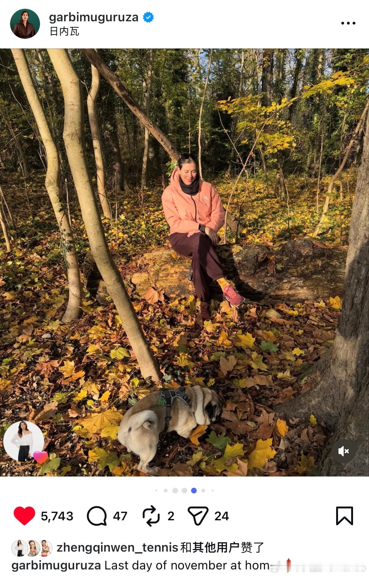 穆古鲁扎!PLOG总结11月!郑钦文点赞Garbine蘑菇!穆古鲁扎在利雅得作为WTA年终总决赛赛事总监后,回到日内瓦家里休养了一阵wta