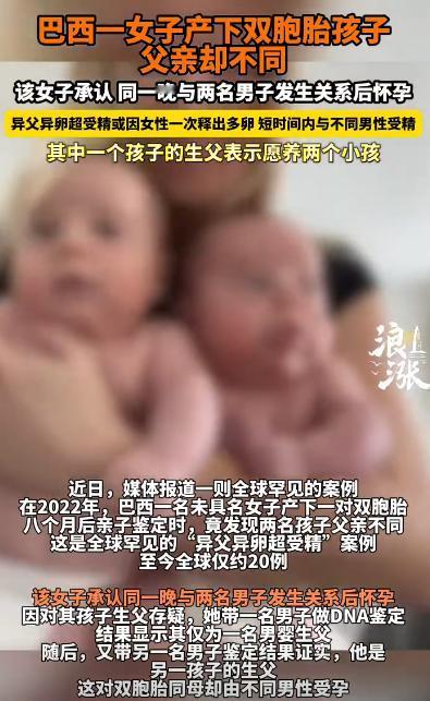 太炸裂了!巴西一女子同一晚上和两名男子先后在一起后,产下一对双胞胎,八个月后亲子鉴定时,竟发现两名孩子父亲不同,系全球罕见的异父同母双胞胎,其中一孩子生父愿养两个小孩。 巴西圣保罗市一家亲子鉴定中心的走廊里,32岁的安娜攥着两份鉴定报告,指节因用力而发白。 报告上的结论颠覆了她对家庭的所有认知,2022年出生的一对双胞胎男婴,确实是她的孩子,但哥哥的生父是男友卢卡斯,弟弟的生父却是另一位熟人马塞洛。 这起“异父异卵超受精”案例,截至2024年全球记载不足20起,而卢卡斯随后的决定,让这桩医学奇迹变成了关于家庭伦理的生动注解。 我从未想过电视剧里的情节会发生在自己身上,安娜在接受当地媒体采访时红了眼眶。 2021年底的一个夜晚,她因情绪波动与男友卢卡斯发生争执后,又与多年好友马塞洛见面,最终发生了两段亲密关系。 不久后她发现怀孕,产检时得知是双胞胎,当时只以为是卢卡斯的孩子。 2022年双胞胎出生后,弟弟的眉眼总让她想起马塞洛,这份疑虑压了八个月,终于促使她带着卢卡斯去做了鉴定。 鉴定中心的医生费尔南达至今记得卢卡斯看到报告时的反应:这个34岁的机械师沉默了足足十分钟,然后抬头问“孩子现在饿不饿”。 让安娜意外的是,卢卡斯没有指责她,反而主动提出“去给马塞洛也做个鉴定,孩子不能没有爸爸”。 后续鉴定证实了马塞洛的生父身份,但马塞洛以“没有做好当父亲的准备”为由拒绝承担责任,卢卡斯却当着律师的面承诺,两个孩子我都养,他们都是我的儿子。 如今走进卢卡斯的家,客厅墙上挂着一家四口的合影,卢卡斯抱着一个孩子,安娜抱着另一个,笑容里看不出丝毫隔阂。 每天早上要给两个小家伙冲奶粉,周末带他们去公园玩,哥哥像我爱吃肉,弟弟随安娜不爱吃青椒。 卢卡斯说起孩子的喜好时如数家珍,他早已为两个孩子办理了监护权登记,每月的工资除了家用,还会存一笔教育基金。 传统家庭观念中,血缘是亲子关系的核心,但卢卡斯的行为打破了这种固化认知,但从法律层面看,卢卡斯的抚养行为完全出于自愿。 巴西《民事法典》第176条规定,生父仅对亲生子女负有法定抚养义务,卢卡斯对弟弟没有血缘关系,即便放弃抚养也无需承担法律责任。 但他在律师见证下签署的抚养协议里写着,抚养义务不因血缘而产生,因爱而存续,这句话被当地亲子权益组织引用,成为宣传“非血缘亲子责任”的案例。 这起事件在巴西社交平台引发的讨论仍在持续。有网友留言“血缘只是开始,陪伴才是父亲的定义”,也有网友担忧“这种情况会冲击传统家庭”。 科斯塔的观点或许能解答这种争议,现代家庭的形态早已多元,单亲家庭、收养家庭、重组家庭…… 无论形式如何,核心都是爱与责任的支撑。卢卡斯的选择告诉我们,家庭的温度从不由血缘浓度决定。 如今双胞胎已经两岁,哥哥会奶声奶气地喊“爸爸”,弟弟虽然还不会说话,却会在卢卡斯回家时张开双臂要抱抱。 安娜说,她至今感激卢卡斯的包容,他没有让孩子为成人的错误买单,而是用爱给了他们完整的童年。 这份跨越血缘的父爱,让这起全球罕见的医学案例有了最温暖的注脚。 在家庭形态日益多元的今天,我们或许该重新思考:所谓亲子,从来不是基因的复制,而是责任的传承;所谓家庭,从来不是血缘的捆绑,而是爱的共生。 信息来源: