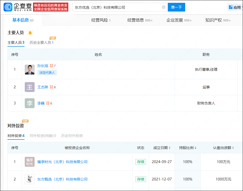 目前,东方甄选科技母公司东方优选(北京)科技有限公司尚未发生变更,孙东旭仍为法定代表人、执行董事、经理。
