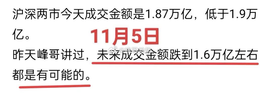 A股峰哥观点:缩量上涨是正常的,缩量导致市场风格发生了改变,同时也限制了市场反弹高度。主力打什么算盘?1,反弹高度有限11月17日到11月21日这一周,各大指数都是暴跌(上证综指跌幅3.9%,深成指跌幅5.1%),收中阴K线。这种中阴线出现,毫无疑问是主力机构出货导致的。既然主力在高位出了货,就不会那么着急的往回走,否则,对主力来说,下跌就没什么意义了。时间换空间是主力们打的小算盘,一段时间内,会把散户的“皮”磨掉。2,市场风格变化把市场成交金额与成交量对比一下,会发现一个比较“奇怪”的现象:市场成交金额在缩小,但成交量却是放大的。沪市上周五成交金额为6450亿,成交量为4.5亿。上周四成交金额为6985亿,成交量为4.44亿。成交量与成交金额的非一致性,说明市场当下的口味已经发生了变化:高价高位的股票被市场轻视了,而中低位中低价的股票被资金关照了。实际上,在11月初,峰哥看淡大盘的时候,就反复强调过:规避高位股的风险,抓小放大。3,题外话有一些投资者只关心大盘的涨跌和手中持股的涨跌,很少关注市场内部的变化。所以,当市场变局来临的时候,常常被市场甩在身后。峰哥11月5日的时候,提到过一个观点:沪深两市的成交金额会降到1.6万亿左右。有些人看懂了其中的道理,有些人没明白。包括一些拥有数十万粉丝的V,也没明白。4,预测今天市场上涨的概率有9成。本周大盘上有阻力(3930~3940点),下有支撑(3870~3860点),短线操作,把握好节奏。个人观点,仅供交流,不构成投资建议!理财有风险,投资需谨慎!大盘行情大盘分析行情