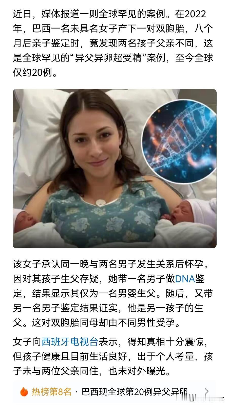 林子大了什么鸟都有! 巴西一女子产下了一对双胞胎, 而这对双胞胎竟然不是同一个父