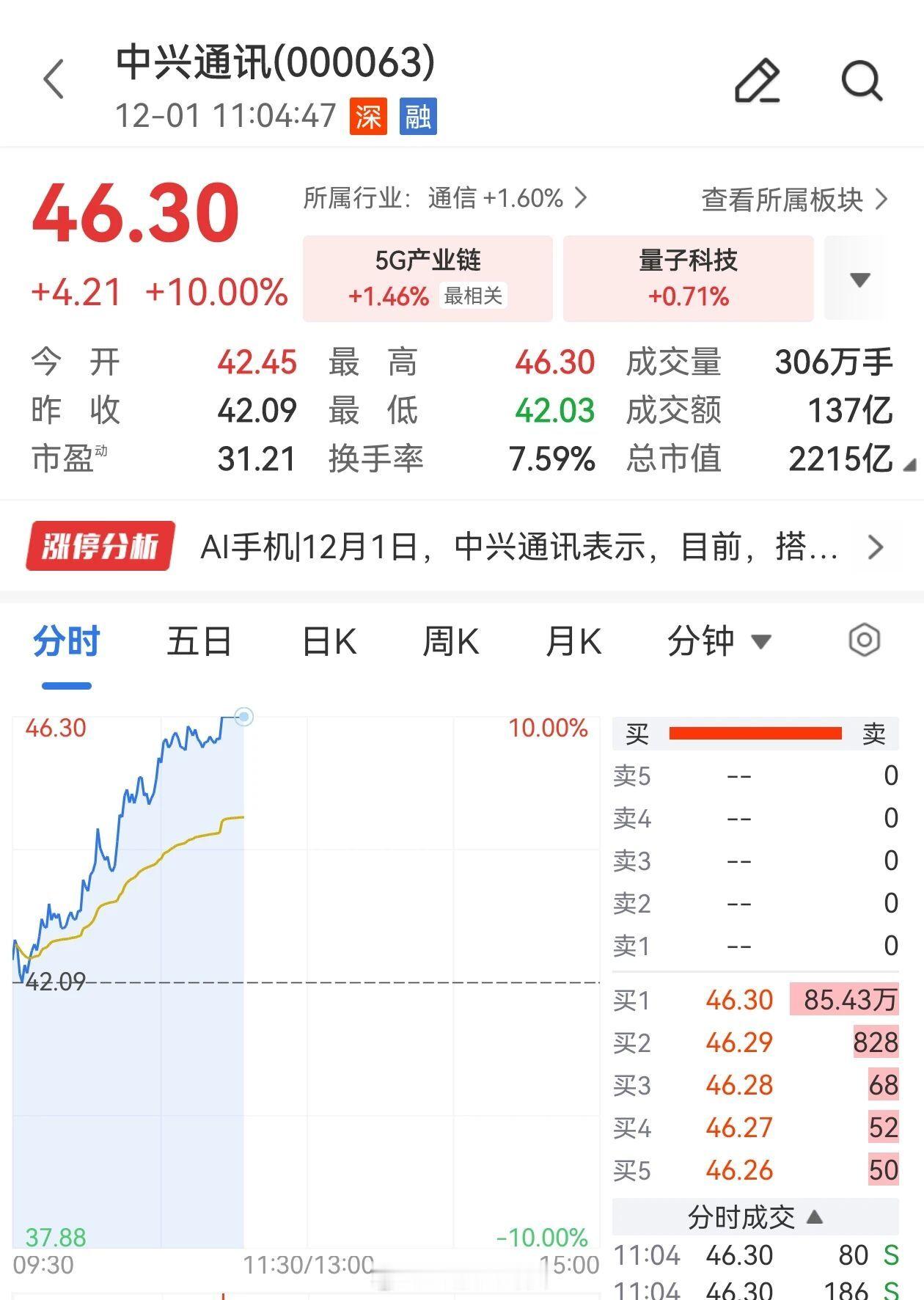 比价点外卖、自动回微信,AI 操作手机的时代来了?受消息影响,中兴通讯今日涨停,成交超137亿,封单金额超40亿元,此外中兴通讯H股涨超10%。