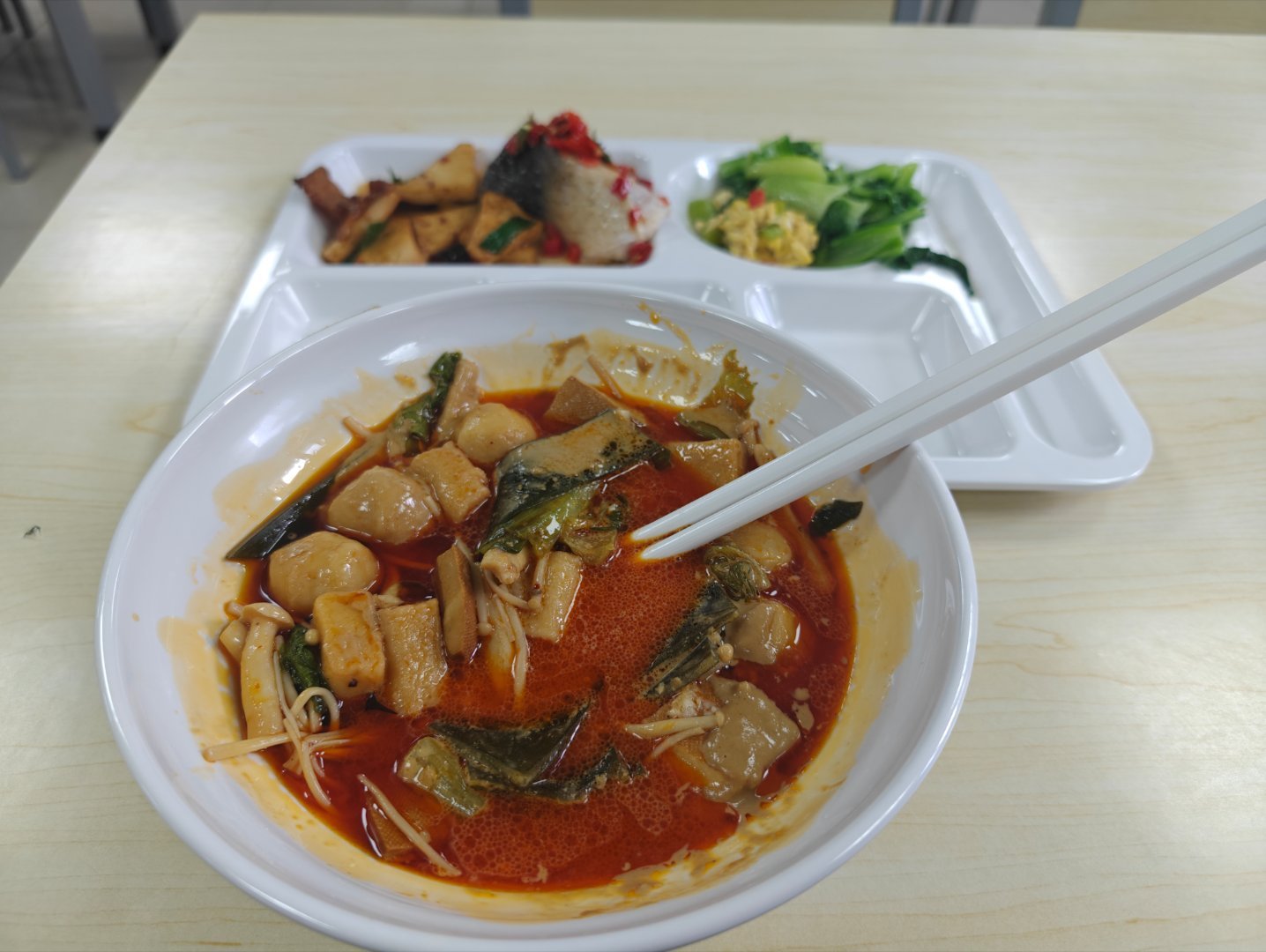 快乐又开始了 今天好想吃麻辣烫 所以来了食堂 结果发现食堂里放的又是现在就出发
