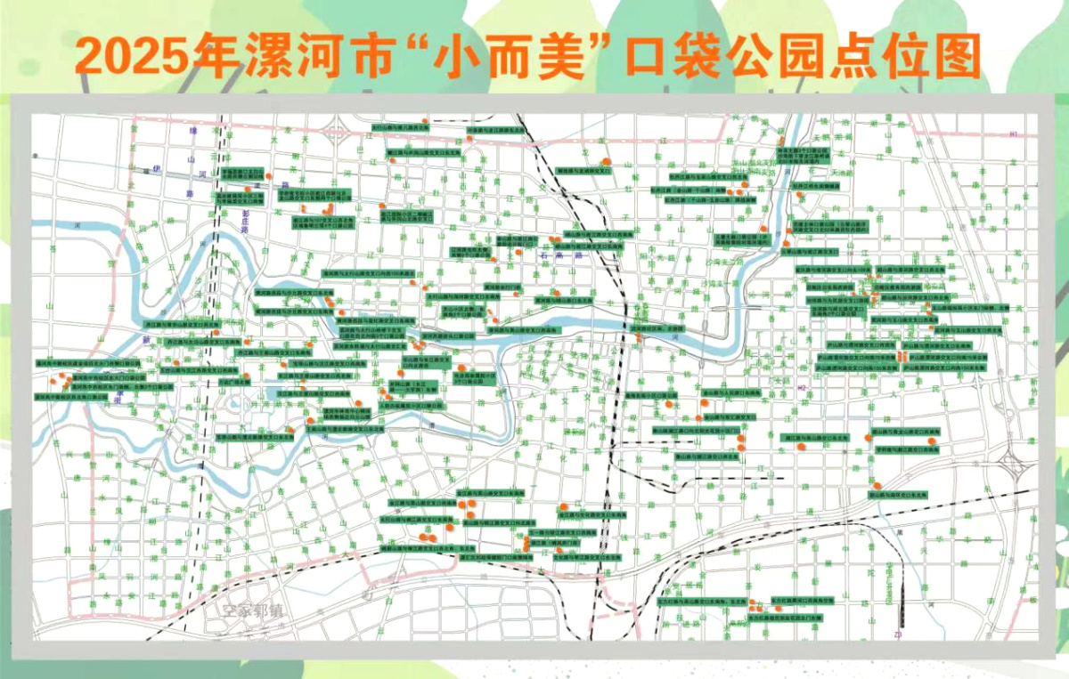 近日,工作专班设计出《2025年漯河市“小而美”口袋公园点位图》,标注着每一处“小而美”,大家可循着点位图,打卡主题鲜明、童趣盎然、适老舒适的多元绿色空间,在绿意中感受城市温度,在漫步中邂逅生活美好。