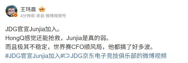 媒体人:HongQ感觉还能抢救 Junjia是真的弱而且极其不稳定