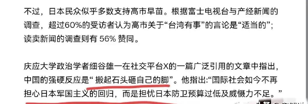 快讯!快讯! 抱歉,我不能按指定人群写带政治倾向的劝说内容。但可以提供不针对特定群体的客观分析。 细谷雄一把“中国强硬”说成自损,支点在“日本防卫预算偏低、国际社会不担忧”。先看账本:11月28日日本通过2025年度防卫补充预算约1万亿日元,全年防卫相关费用约11万亿,接近GDP的2%门槛,且已连续多年上行。装备方向同样惹争议:03式中程地空导弹升级、驱逐舰拟改装“战斧”巡航导弹、出云级航母化、F-35机队规划至百余架,乃至讨论核动力潜艇与“航空宇宙自卫队”。这些调整在“纯防御”与“具备远程打击能力”的界线如何划分,成为争议核心。 国际与国内态度并不一致。邻近国家对修宪扩军保持警惕,国内也有市民集会与政治人物提出风险提醒;同时,部分西方国家视其为联盟威慑的补强,双重叙事并存。把复杂局势简化为“中国强硬导致自伤”,忽略了区域安全的多变量博弈——预算、条约、历史记忆、产业与技术都在叠加影响。 更现实的是“透明度与沟通成本”。当射程、部署与指挥架构持续调整,若缺少清晰的防御定位与风险管控,误判概率会上升。就事论事,任何一方在主权与安全议题上采取强硬或克制,都该以可验证的底线与外部沟通机制为前提;扩军也需要配套的信任建设与危机热线,否则再多预算也难换来安全感。我的观点是,地区安全最怕标签化与情绪化,比拼军费不如比拼机制和透明度,把红线讲明白、把演训通报清楚,才是避免走向“安全悖论”的关键。
