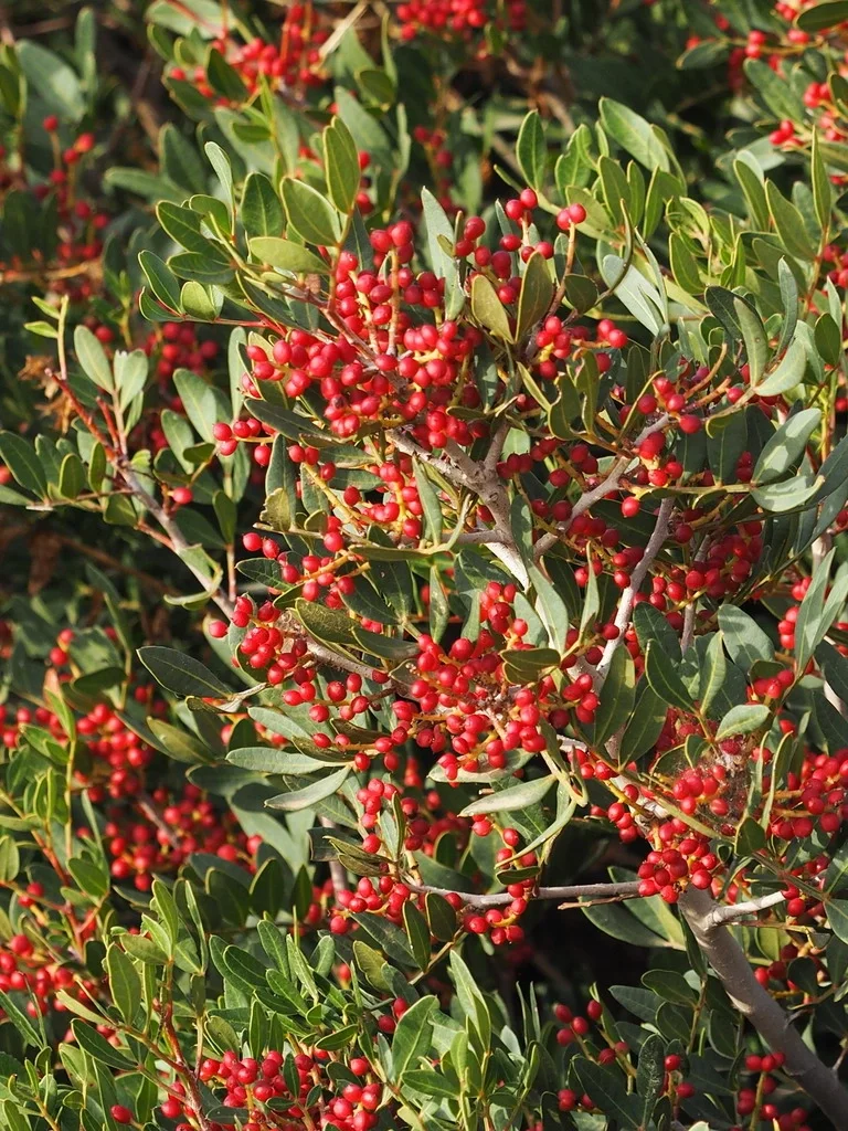又叫陆熏香树,漆树科,深绿色的灌木或小树,羽状的树叶和诱人的红色果实,分布在整个地中海,其树脂熏陆香是一种名贵香料。