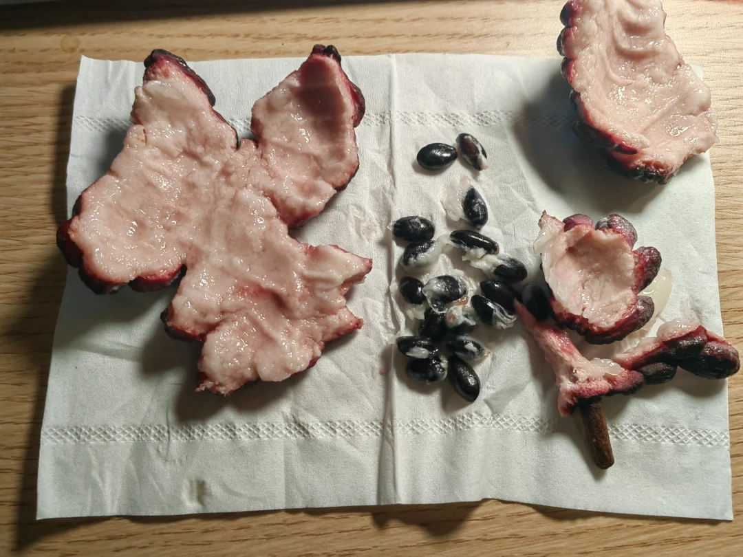 朋友自己种的玫瑰释迦熟了,寄给我尝尝 甜度没有普通的牛奶释迦高,不齁,非常合适,味道层次也不错,缺点是籽多肉少,需要边吃边吐籽[害羞R][害羞R]