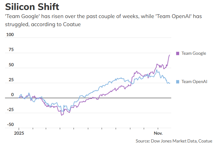 动荡的11月后,这五张图表暗示了美股接下来的走向美股美股 据市场观察报道,11月历来是美国股市的强势月份,但今年并不顺利。尽管10月收官创下纪录,但进入11月的前五个交易日,美国主要股指却开局下跌,创下自2008年以来11月最差的开局。在接下来的几周里,抛售压力持续,人工智能概念股票承压。人们普遍担心估值过高,以及数据中心扩张是否具有可持续性,加上市场越来越怀疑美联储是否会在12月再次降息,这些因素都被认为是下跌的主要原因。为海外华人提供有价值的信息与分析,更多内容和全文可在蓝天、电报、x查找causmoney,或直接谷歌搜索市场在11月最后一周出现反弹,标准普尔500指数和道琼斯工业平均指数,出现近年来感恩节周表现最好的成绩。这两个指数在11月最后一个交易日,完全抹去了月初以来的跌幅。与此同时,小盘股的罗素2000指数本周飙升5.5%,是自2024年11月8日以来的最佳周表现。在主要股指中,只有纳斯达克综合指数在11月收跌,下跌1.8%,终结了连续七个月上涨的走势。市场的其他板块跌幅更大。包括美股空头最多股票在内的投机类股票承压,比特币和其他加密货币的总市值在11月中旬蒸发了1.2万亿美元。虽然投机资产易在月末有所回升,但多数从10月以来仍处于较大亏损状态。GW&K投资管理公司的投资组合经理亚伦·克拉克表示:“今年以来,投资者首次感受到真正的压力,除了那次关税恐慌。从那以后市场就一路向上。现在是对多头逻辑的第一次考验。”不过,投资者依然保持警惕。芝加哥期权交易所波动率指数已回落至长期平均值以下,但本周收于16.35点,考虑到标普500已接近历史高点,这一水平仍然偏高。CNN的恐惧与贪婪指数则为24,处于“极度恐惧”区域。由于过去一周交易清淡,投资者将密切关注12月第一周市场的表现,届时更多交易者将重返岗位。这将更清晰地揭示,当前的反弹是否能持续到年底。StoneX市场分析师法瓦德·拉扎克扎达表示,11月压制市场情绪的许多问题仍未解决。以下五张图表或许可以揭示市场未来的走向。投资者站队AI本月早些时候,Alphabet公司推出了大型语言模型Gemini 3,为人工智能板块注入新能量。此举也使与AI相关的股票分化。投资者开始青睐与谷歌母公司有关的企业,尤其是博通。博通与谷歌合作开发了Tensor处理器,这是用于训练和运行Gemini 3的专用芯片。与此同时,与OpenAI有关的公司股票则出现下跌。专注科技投资的Coatue Management,将股票分成“谷歌阵营”和“OpenAI阵营”两个组合。图表展示了过去几周两者表现的分化情况。Independence Square Advisors创始人约翰·格里姆利表示:“六个月前,谷歌还是个边缘角色,人们还认为这个公司将失去付费搜索业务。但现在在自动驾驶领域通过Waymo处于领先,同时拥有被认为最强的LLM,或至少目前最领先的模型。”谷歌的TPU,被视为可以挑战英伟达在大型语言模型芯片市场垄断地位的产品。格里姆利说:“他们找到了新的计算方式,不必再为英伟达的芯片支付高额费用。”除了Alphabet和博通,“谷歌阵营”还包括Celestica、Lumentum Holdings和TTM Technologies。“OpenAI阵营”则包括英伟达、微软、软银集团、甲骨文、超威半导体和CoreWeave。投资者迅速做出反应。标普500指数周二上涨0.9%,而英伟达下跌2.6%。根据Carson Group首席市场策略师瑞安·迪特里克的数据,这是自2022年7月1日以来,英伟达跌幅超过2.5%当天标普500涨幅最大的一次。这表明,即便英伟达不再独占鳌头,AI板块仍能为标普500和纳斯达克提供上涨动力。关键的美联储决定美联储是否会在12月再次降息,成为市场关注的核心问题。包括美联储理事克里斯托弗·沃勒在内的多位高官的讲话,重新点燃了市场对12月降息的预期。有报道称,白宫经济顾问凯文·哈塞特有望成为下一任美联储主席,也推动了本周市场的上涨。Granite Bay财富管理公司首席投资官保罗·斯坦利表示:“股市正在因12月降息的可能性而上涨,因为现在可以明确的是,劳动市场是美联储的优先考虑,而降息将有助于防止就业市场进一步降温。”更多股票参与反弹10月下旬标普500指数接近新高时,华尔街开始担忧这轮上涨主要依赖少数科技巨头。早在10月28日标普500创下收盘新高前,市场的广度就已开始收窄。11月20日,仅47.31%的标普500股票交易在200日均线之上,创下6月以来最低水平。此后,这一比例开始回升。过去几天的反弹带动医疗保健等此前表现疲弱的板块走强。到上周为止,超过54%的标普500成分股交易在长期均线上方。Carson Group的迪特里克指出,市场广度常常领先于价格,因此参与度的提升意味着大盘短期内可能继续走高。内部人士买入增加10月,Vicker’s Stock Research追踪的纽交所上市公司内部人卖出与买入比例飙升至27以上,为有记录以来的最高水平,表明高管和内部人士大举抛售。截至11月24日,这一比例已降至2.5。Argus Research旗下的医疗与内部人趋势分析师贾斯帕·赫尔韦格表示,这一水平的指标预测能力有限。但比例下降表明,越来越多的内部人士在买入自己公司的股票。内部人出售股票的原因很多,例如支付税款或其他支出,因此这一指标并不总是领先指标。但买入通常只有一个原因:他们认为股票将升值。外国买家持续涌入美股今年4月,特朗普的关税政策引发全球市场震荡,引发人们担忧外国投资者可能会回避美国资产。市场开始担心出现“抛售美国”