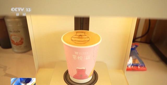 总台记者曾献钰:这杯咖啡就是来自川博的“盲盒咖啡”,而今天我开出了拉花纹样,就是来自战国时期的水陆攻战纹铜壶。