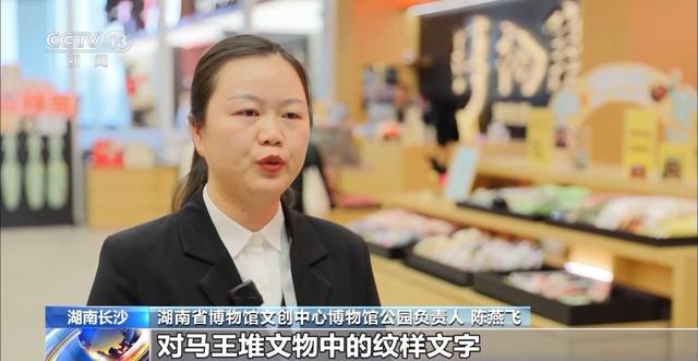 湖南省博物馆文创中心博物馆公园负责人陈燕飞:我们首先通过高精度扫描,微观摄影及三维建模等技术,对马王堆文物中的纹样文字等核心美学元素进行精准采集与提取,形成原始数字素材库。通过联手签约设计师、插画师进行二次创作,使其既保持文化基因,又符合当代审美,创造了实物加产品加数字体验的新型消费体验。
