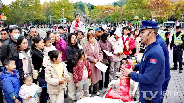 消防员拿着灭火器、灭火毯等器材,向围拢的群众细致讲解。“大家看,这个红色的是干粉灭火器,适合扑灭电器、油气引发的火灾,而绿色瓶身的水基型灭火器不仅能灭火,还能用于火场逃生时的隔热降温。”消防员一边转动灭火器演示,一边用通俗的语言讲解不同器材的适用场景。