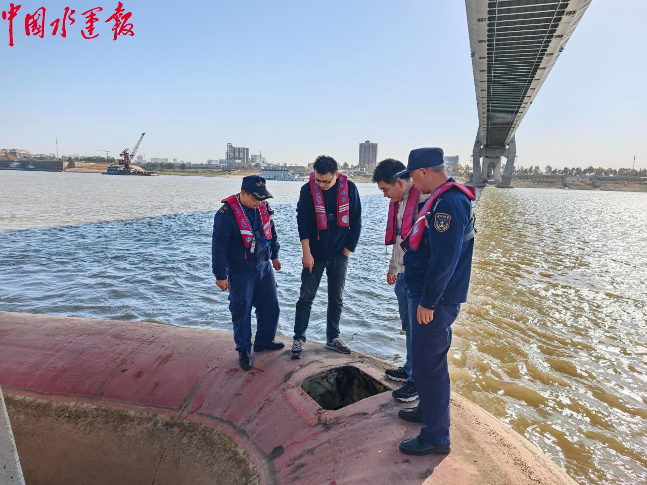 此次联合检查行动聚焦桥梁防撞设施的安全性能和运行状态。海事执法人员与设计院的5名技术专家协同作业,深入现场,对防撞设施的每一个构件、每一处连接点进行了认真勘查和记录,同时,双方人员还围绕现有防撞设施设置的合理性与实用性进行了探讨和交流,海事执法人员结合日常监管中掌握的航道特点、船舶通航习惯以及以往案例,提出了实际运行中可能遇到的问题;设计院专家则从桥梁结构设计、防撞理论计算及材料工艺等专业角度,分析了设施设计的初衷与实际效果的匹配度。针对检查中发现的部分防撞设施因长期受水流冲刷、漂浮物撞击等自然因素影响而出现的磨损、失效问题,检查团队现场进行了研判,并明确了整改方向。通过“现场监管”与“设计源头”的直接对话,为后续优化防撞设施布局、提升防护效能提供了宝贵的实践依据。
