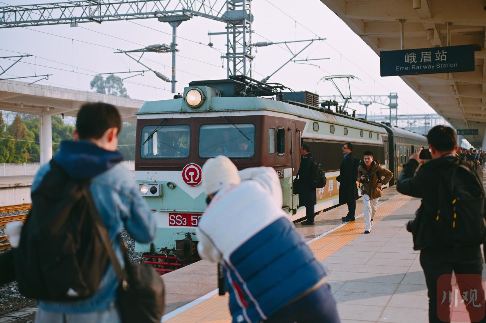韶山3型电力机车到达峨眉山市后车迷在记录。