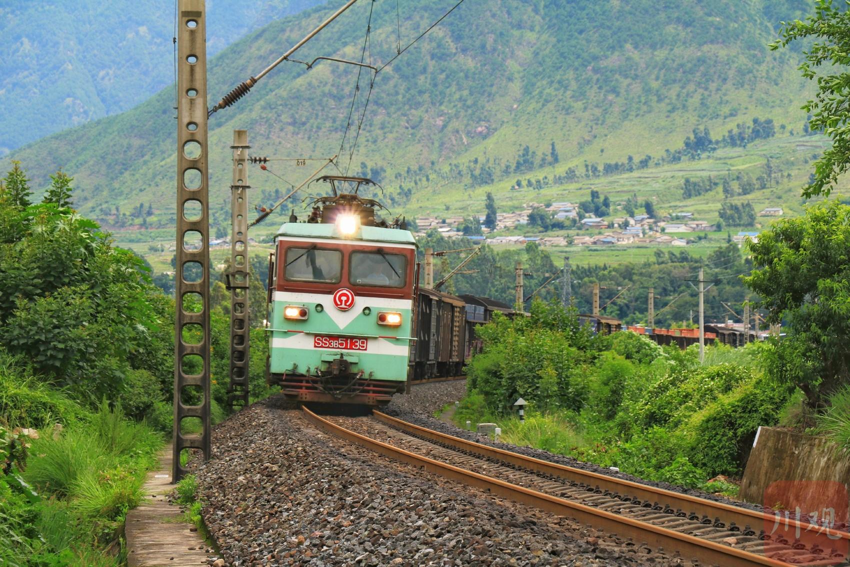 韶山3型电力机车牵引下的“慢火车”行驶在大凉山。
