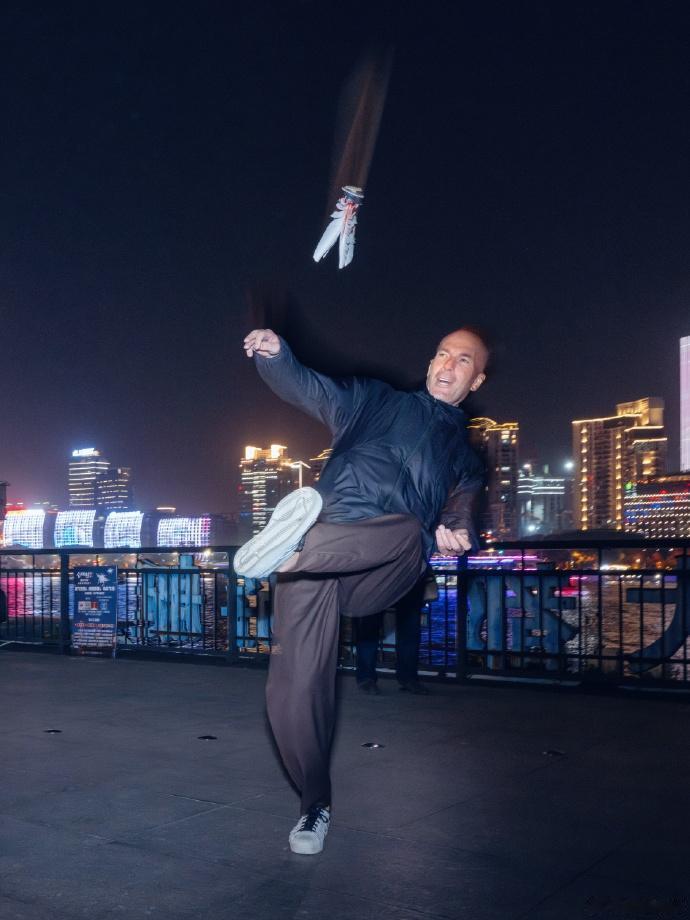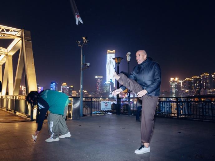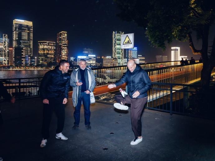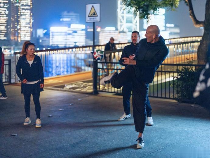 虎扑12月01日讯近日齐达内在中国行中来到上海黄浦江边,与阿姨爷叔切磋踢毽子。