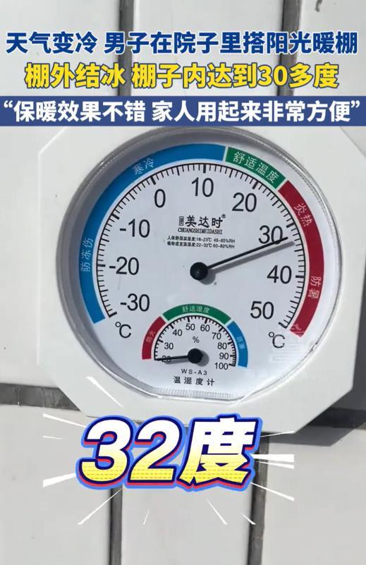 这是真聪明!近日,河北石家庄,天气变冷后,一男子突发奇想在院子里花1000多块钱搭了一个阳光暖棚,没想到效果出奇的好,棚外的水都结冰了,棚里面最高却能达到30多度,网友:这不会有味道吗? 最近石家庄冷得彻骨,风刮在身上就像刀割,水一泼出去马上结冰,不过,有个大哥的操作火了,他花了1000多块在自家院子里搭了个阳光暖棚,效果直接惊艳全家。 棚外寒风呼啸,棚里却暖得能穿短袖,最高温度甚至冲到30多度,网友们看了视频又羡慕又好奇:“这么晒塑料膜不会有味吗?” 大哥家是典型的农村“四大间”,房子宽敞但冬天阴冷透骨,家里老人一辈子节俭,舍不得长时间开空调,总说“能省点是点”,冻得直搓手哈气。 看着老人瑟瑟发抖,大哥心里不是滋味,他想,怎样既省钱又能暖和家里呢? 灵感来了,是他偶然刷到的东北农村自建阳光暖棚的视频,“自家院子空着,也是闲着,不如用太阳能取暖!”他心里一拍脑袋,说干就干。 大哥上网查资料、比材料,花1000多块买了镀锌钢管骨架和耐晒PO膜,又请工人上门搭建,没几天,一个简易暖棚就搭好了。 搭好之后,全家惊呆了,只要白天有太阳,棚里温度蹭蹭往上窜,正午温度直接冲到35℃。 老人穿件薄外套就够,还能在棚里晒太阳、照料花草,更神奇的是,这棚子蓄热效果特别好,晚上还有余温,还能通过连通的房门给屋里传热,让原本阴冷的房间温度提升五六度,再也不用裹得像粽子。 视频发到网上,火得快,网友纷纷留言:“零电费的冬日神器啊”“我家院子也能搭起来”。当然,也有人担心:“塑料膜长时间晒会不会有味?密封这么严,会不会闷?” 大哥早就想好了,他选了正规厂家的0.15毫米厚高透光PO膜,高温暴晒也不易散味,稳得多,而且棚顶预留通风口,白天会定时开换气,空气流通,即使有轻微气味也能及时散掉,不会闷。 他还分享了搭建技巧:暖棚坐北朝南,最大化吸收阳光,骨架用镀锌钢管,再用U型地钉和压膜线固定,抗风性强,五六级大风也不怕。 总结一句话,搭暖棚的核心就是“采光+保温+通风”,这三点做好,温暖又放心。 但这种暖棚并非人人可用。大哥提醒,要有院子这样独立空间,冬季日照足够,如果住高层或者冬天常阴天,效果就会差很多。 看了大哥的视频,很多网友开始学着搭,甚至专门请教经验,大家都说,这1000多块花得太值了,一次投入,后期几乎零成本,既解决了取暖问题,又表达了孝心,比送补品实在多了。 其实,生活里的小智慧最实用,大哥用简单办法解决冬季取暖难题,环保又省钱。选材靠谱、通风合理,异味和闷热问题都能解决。 这个阳光暖棚,不只是冬日的暖阳,更承载着对家人的牵挂。 如果家里条件允许,这样的过冬妙招,绝对值得试一试。 毕竟,冬天最幸福的事,不就是在冰天雪地里,有一个温暖又安心的小天地吗? 对此你怎么看? 信源:萧山发布