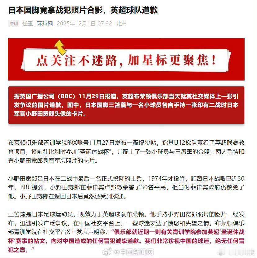 英超日本国脚手持日军军官卡片合影 体育无国界,但历史有底线,践踏民族情感、美化