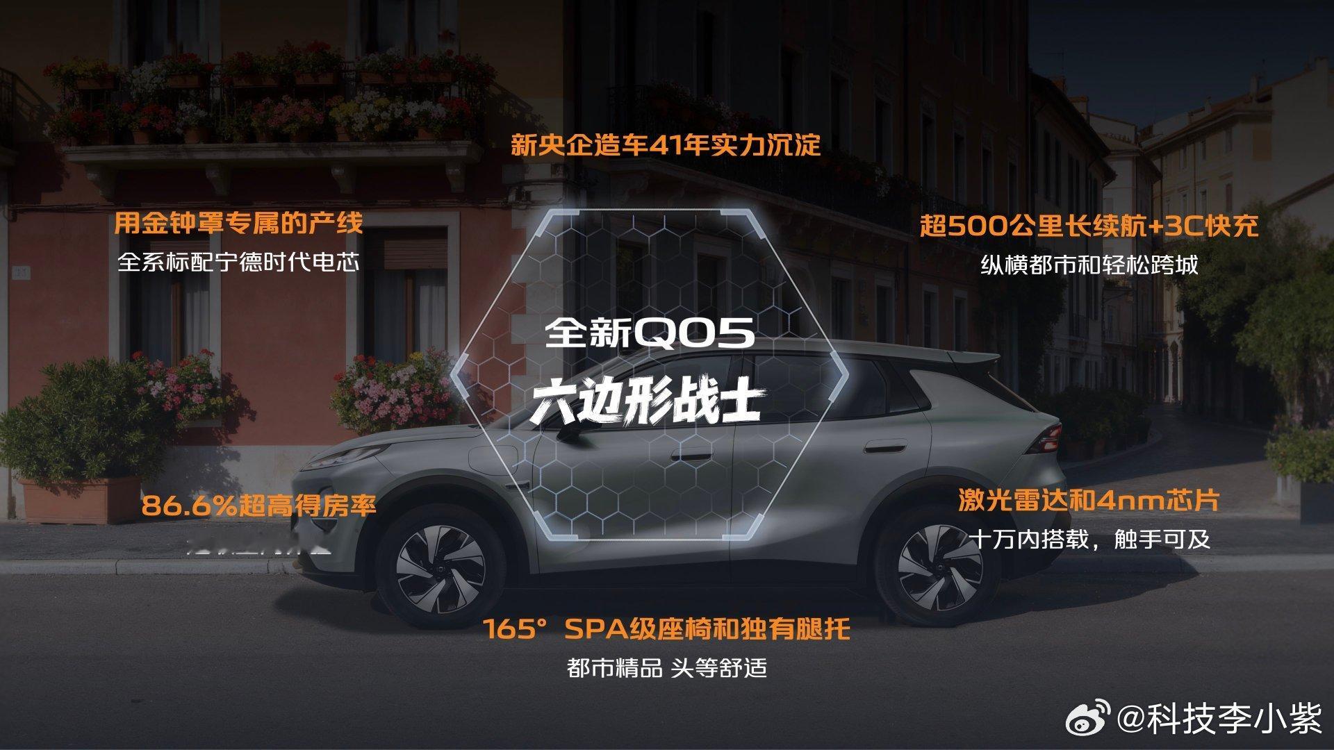 长安启源全新Q05  11月29日,长安启源全新Q05开启“超级购车季”,并宣布全面刷新用户购车权益,涵盖整车及三电系统的“三大安心保障”、购置税兜底政策延续至12月31日。如果想选台颜值能打、实用又省钱的纯电SUV,那长安启源全新Q05真的太适配了!官方指导价7.99万起,现在补贴后7.49万起,特别是对于刚工作没太多预算、养娃要省开支的,这个价位完全无压力。先看这车颜值,国际大师设计的外观,承袭“扶光”美学,大溜背线条+海浪形D柱,看着灵动不笨重,松野绿、流金紫这些颜色,通勤开不沉闷,周末带娃出游也超上镜;贯穿式星环灯带晚上点亮超有仪式感,车顶激光雷达更是同级独一份。再说说你们关心的实用点:2735mm轴距,后排坐两大一小不挤,娃的安全座椅、随身包都能放,后备厢540L,装婴儿车+露营装备没问题,放倒还能变1380L;下班累了,前排座椅8点按摩一开,通风加热冬暖夏凉,副驾165°躺平能歇会儿,1.8㎡全景天幕,超治愈。续航也不用愁,宁德时代电芯,405km和506km超长续航,甚至可以通勤一月不充电,告别里程焦虑,妥妥的家庭通勤刚需好车!10万内唯一激光雷达纯电SUV全球都市精品纯电SUV超级购车季