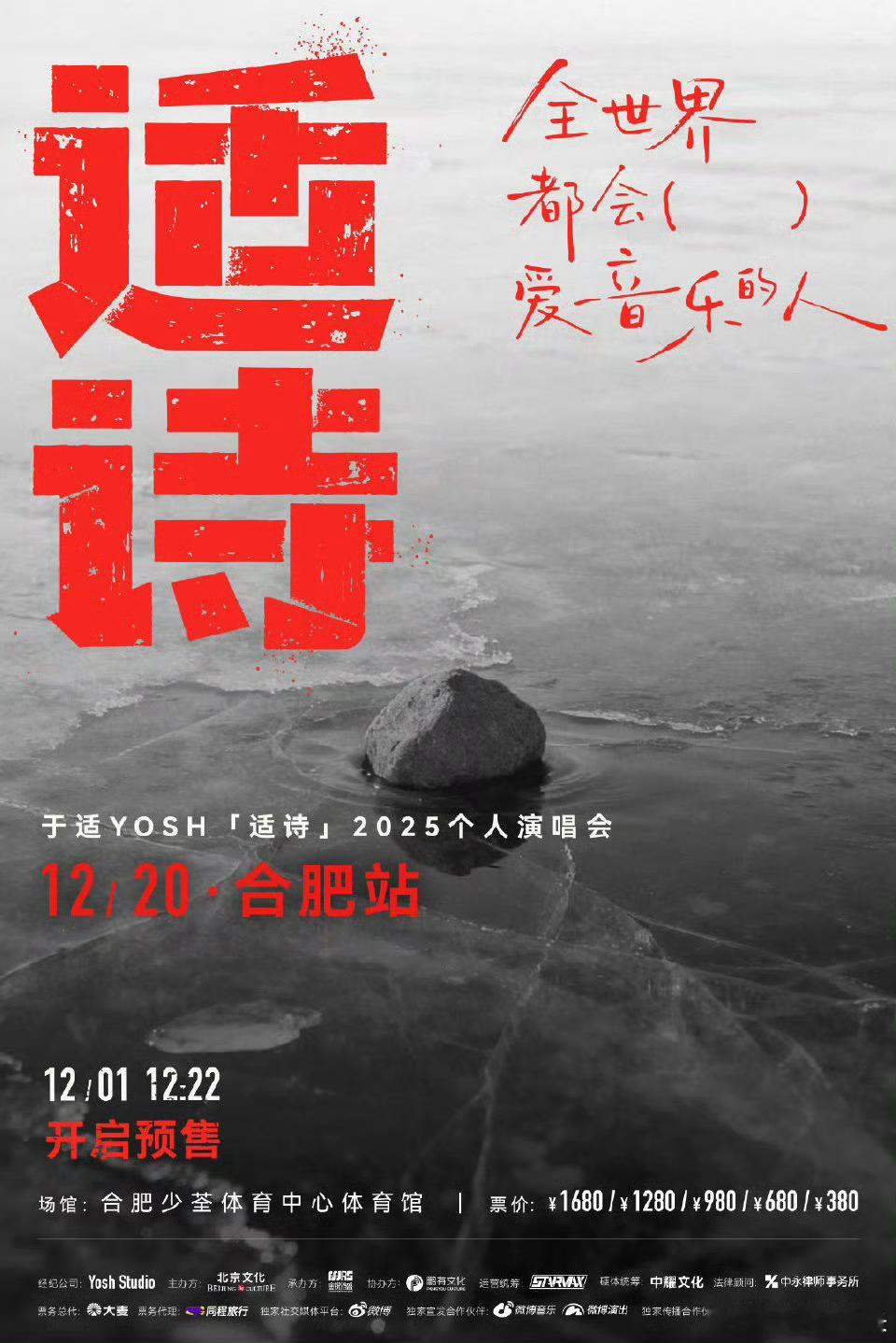 于适演唱会合肥站秒罄于适合肥演唱会于适「适诗」2025个人演唱会——合肥站预售售罄12.20日舞台见 于适yosh