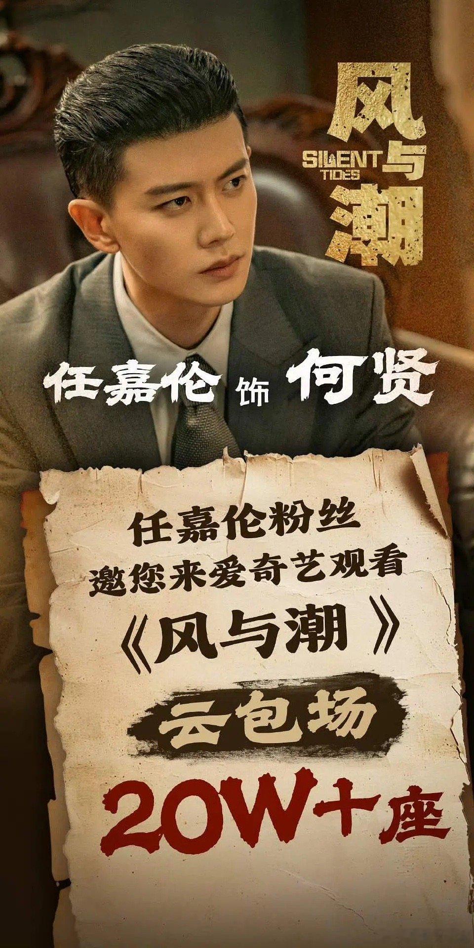 任嘉伦粉丝持续发力中抗战人物传奇大剧《风与潮》 CCTV1➕爱奇艺即将来袭 粉丝包场20W,有点期待这个剧了!