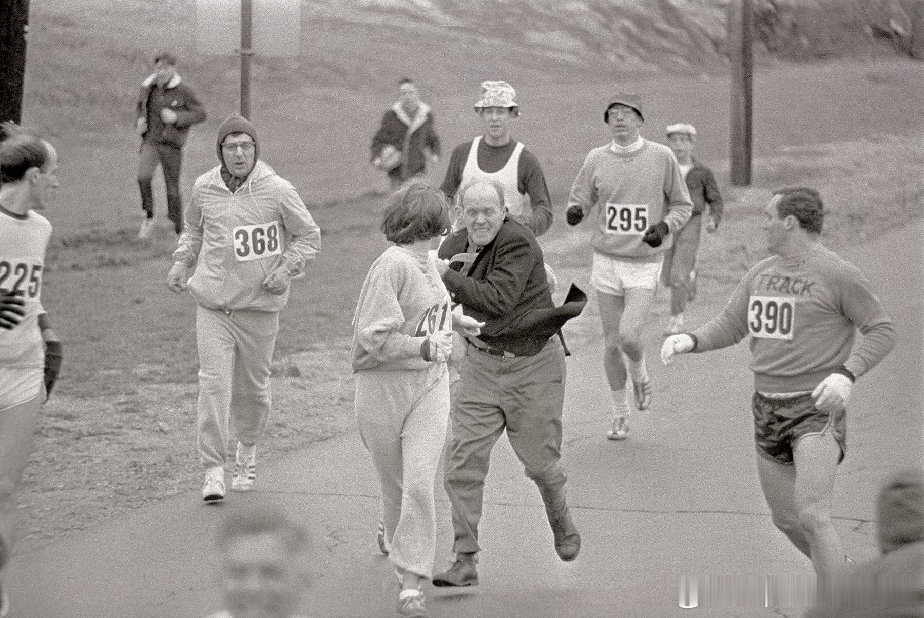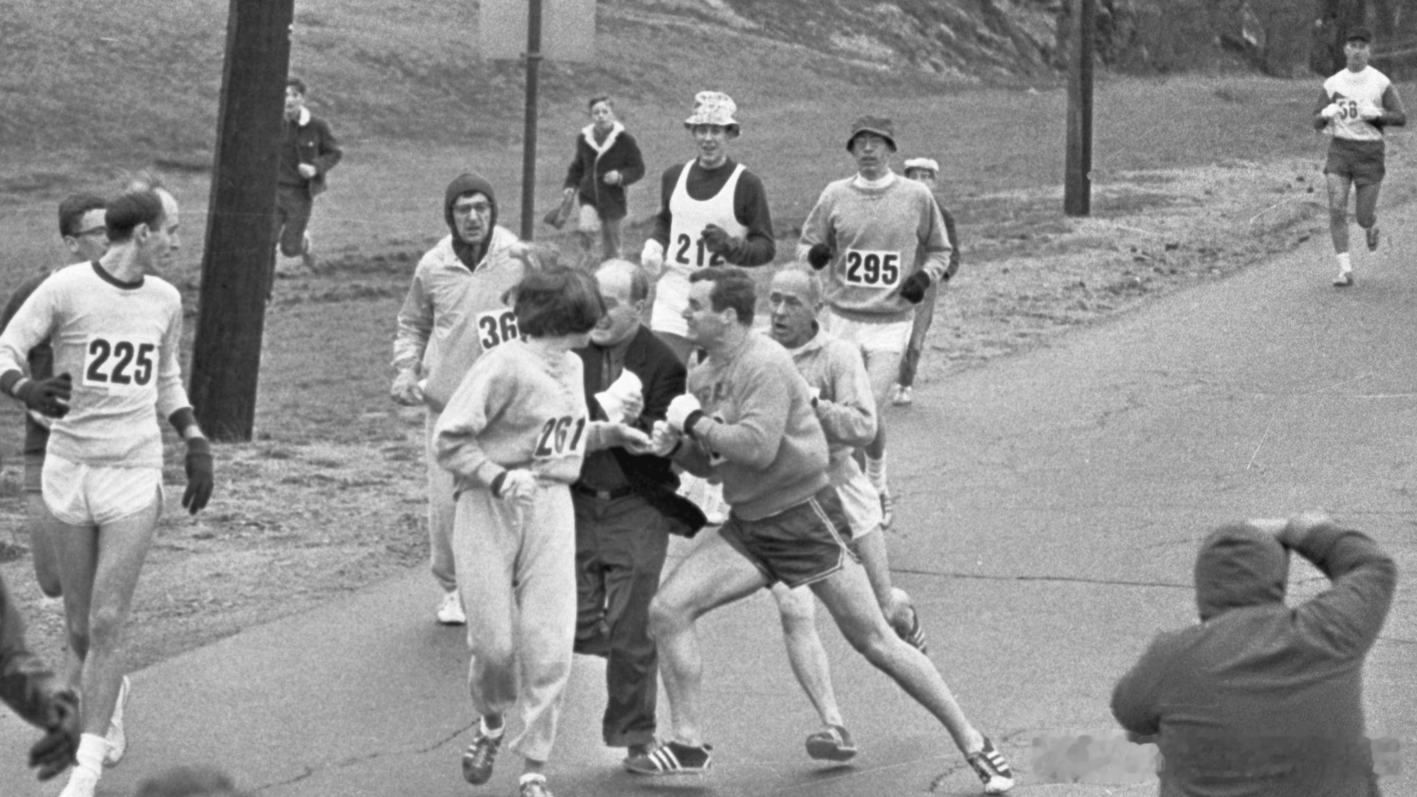 跑马拉松并不是一件容易的事,但对于凯瑟琳-斯威策(Katherine Switzer)来说却更加困难,因为她选择挑战规则,成为1967年参加波士顿马拉松赛的第一位女性。在这里,你可以看到跑步者和比赛组织者试图阻止她参加比赛。她完成了马拉松比赛,她的行为导致女性在1972年被允许正式参加马拉松比赛历史影像