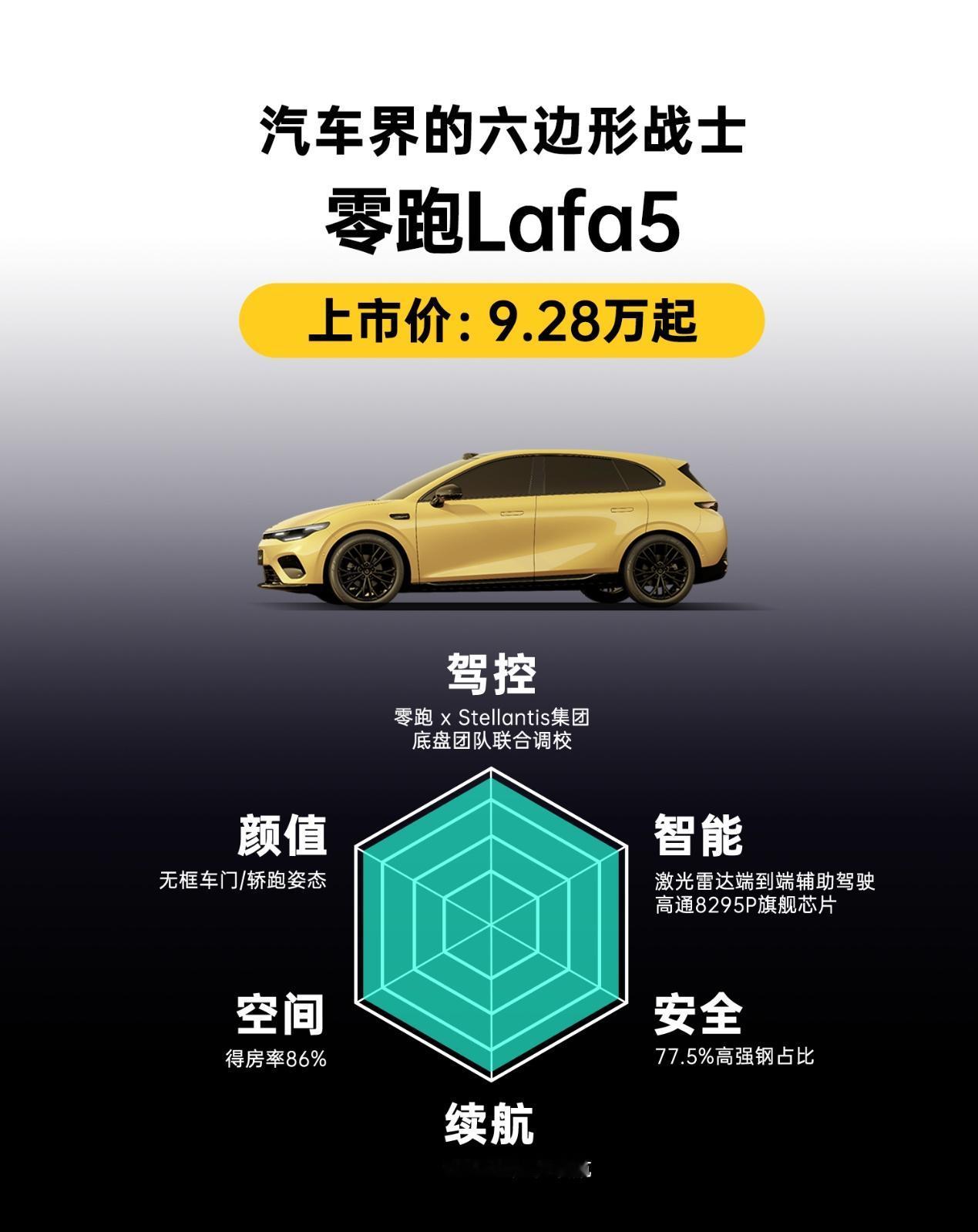 11月交付破7万,Lafa5或成新增长引擎! 12月1日,随着各家新势力陆续公布11月销量,我发现新势力单一品牌第一居然还是零跑。它单月交付再破7万台,至此零跑已连续九个月稳坐新势力销冠,且今年累销已达53万台,不仅提前完成年度目标,还有希望冲击60万台。而全新上市的Lafa5,无疑将成为品牌销量增长的新引擎,助力后续冲刺更高纪录。 这款专为年轻人打造的轿跑产品力格外亮眼,相比B系列带来包括颜值、品质、驾控等在内,价值近1.3万元的二十多项升级。不仅标配无框车门、19英寸轮毂,内饰还用上大面积仿麂皮+Nappa真皮,然后搭载的激光雷达+8650/8295P双旗舰芯片智能组合,在辅助驾驶和人机交互上的体验也更好;另外,还有后置后驱、中欧团队调校底盘、605km续航等,在各个层面都无可挑剔。 而且Lafa5现在入手可享9.28-11.68万元的限时惊喜价,以及首任车主享四项终身质保、4000元复购礼等在内至高2.49万元礼遇,可以说年轻人的Dream Car近在咫尺。接下来更有望凭借出色市场表现,推动零跑向着2026年百万台目标稳步前行。 零跑汽车 零跑Lafa 5零跑汽车11月交付70327台 10万级轿跑价值标杆选择Lafa5是选择一种生活