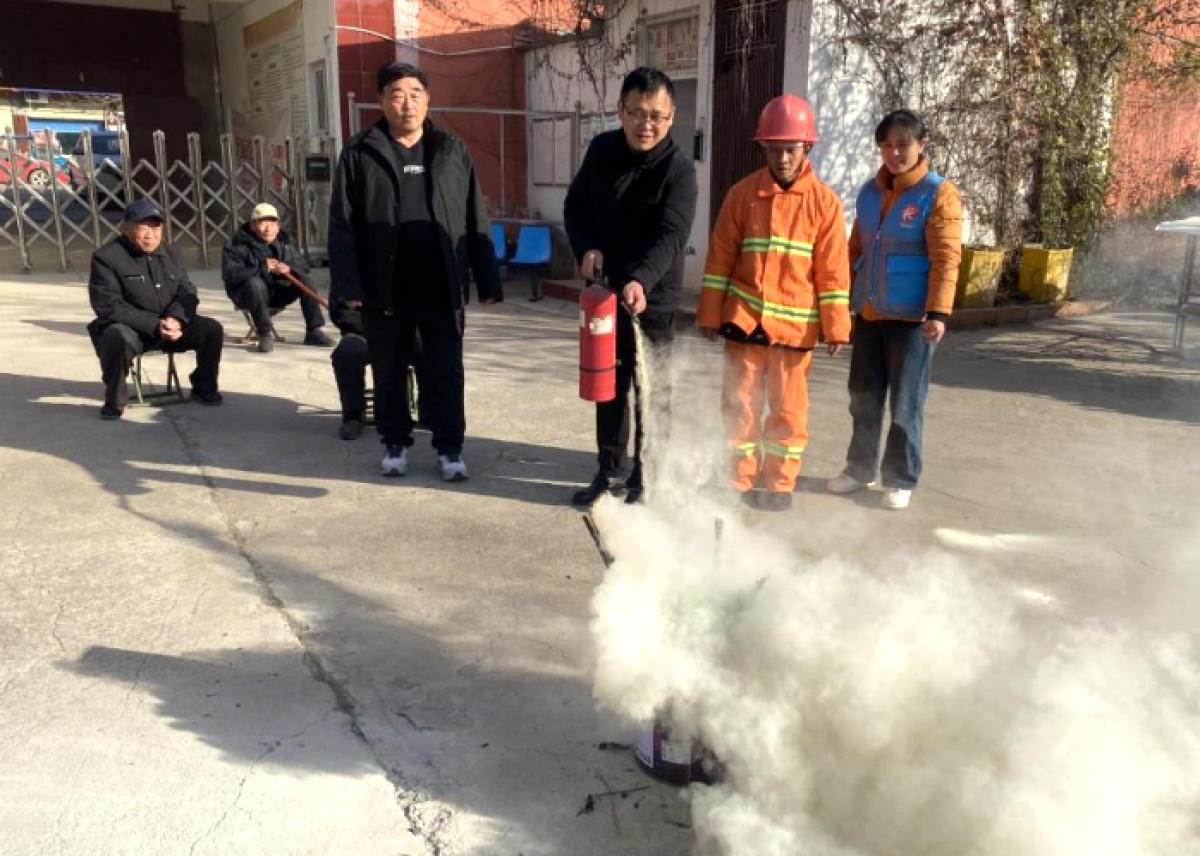 随着模拟着火点在院内安全区域“燃起”,演练正式拉开帷幕。工作人员迅速响应,按照操作规程,熟练使用灭火器进行扑救演示,动作规范、配合默契,展现了良好的初期火灾扑救能力。
