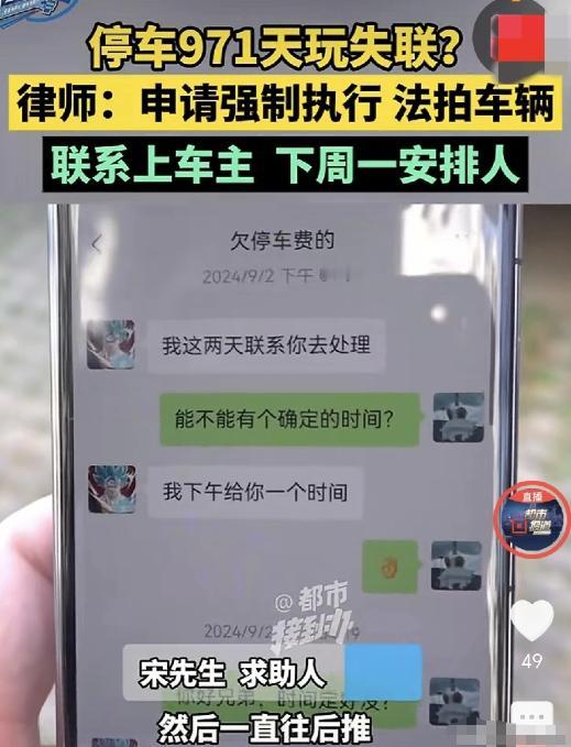 11月26日报道,河南郑州,一停车场老板发现,一辆车停了971天,停车费已累计到了39847元,老板联系车主,车主电话不接,V信不回,老板换了6个电话,还是打不通对方电话,老板报警,可警方回复,这是经营停车场,没有占道,交警无法拖车,车主忍无可忍,就是把车赔他,车都不值5000块钱,老板想把车给砸了,又怕车主回来讹他,老板进退两难…… 在河南郑州,宋先生这几年来天天被同一辆破车折磨,别人停车都是停几个小时、几天,了不起一个月,这辆车倒好,一停就是971天,眼看快攒满三年了。 算到现在,停车费已经蹭蹭涨到了将近四万块钱,问题是,车主人影都见不着,好像从世界上蒸发了一样。 宋先生最开始压根没往这方面想,车刚停进来时安安稳稳,看着也不是没人管的车,等到第一个月到期,他按流程给车主发信息催续费,结果对方从那时起就开始“失了联”。 电话能打通,但怎么都不接;发微信,开始还能回两句,说人在杭州,说忙完就来处理,宋先生也信了,以为人家确实工作忙。 谁知道这句话一说,就是一去不回,再发消息完全没动静,像被拉黑却又不是拉黑。 眼看车位被霸占,欠费越滚越大,宋先生急得团团转,他还以为是自己号码不吉利,干脆一次性办了六张新卡,一个个轮着给车主打。 结果全是一模一样:电话通着,就是没人接。 宋先生越想越气:“要是他真出了啥事,比如住院了、出国了、坐牢了,我都能理解,车白让他开走都成!可明明电话通着,就是不接,这不是摆明了装死赖账吗?” 说到这儿他就来火。 实在没招了,他只好报警求助,想着警察能不能把车拖走,结果民警到现场一看,表示管不了,理由很简单:这是经营性停车场,车又没违规占道,不属于交警部门的拖车范围,只能靠他自己跟车主协商。 这话等于白说,宋先生听完当场愣住,感觉最后一根救命稻草都断了。 更扎心的是,这车根本不值钱,懂车的人看了直摇头,说这车最多五千块,也就是说,就算车主说一句“车我不要了,当赔偿吧”,宋先生也得倒贴三万五。 想到这儿,他看着那辆落满灰的车就来气,好几次都想直接砸了,砸完出一口气再说,可脑子一转,又担心万一车主突然跳出来,一口咬定是他损坏财产,不仅欠费拿不回,还要赔对方钱,那就麻烦大了。 这段时间,因为这个破车位一直被占着,他不能正常收车,少赚的钱加上对方欠的停车费,损失一天比一天大,朋友们也替他着急,纷纷给他出主意,有的说:“拖走!拖到角落里不就行了?” 他一听就摇头,真动了车,车主只要来讹一句,他就得吃不了兜着走,也有人建议他直接起诉,可他一问才知道,走法律程序又慢又麻烦,赢了官司也不一定能收回钱。 再说这车本来就不值钱,就算法院拍卖了,也补不上他这边的损失。 宋先生现在就是典型的进退两难:不处理,损失持续扩大,处理,又担心惹官司。 律师给他的说法是:车主长期占用收费车位不缴费,属于侵权,他完全可以起诉要求支付费用。 胜诉之后,还能申请强制执行,像拍卖车辆、划扣财产这些都可以操作,可打官司要花时间、花精力、还得花钱,他一想到这里,就又犹豫了。 “我现在就是想找个能让我睡着觉的办法,要么车主来挪车交钱,要么车合法处理掉,不要再这么拖着。” 宋先生无奈得很,可现实是,他能做的,只剩继续等。 周围不少人看到这个情况,也替他鸣不平。 有网友感慨:“僵尸车占着车位死不处理,停个车都能把人折腾成这样,维权咋就这么难?” 大家都希望能有更明确的制度,让这种恶意欠费无处可逃,也让合法经营者不至于被这类无赖行为坑到损失惨重。 对此你怎么看? 信源:都市报道