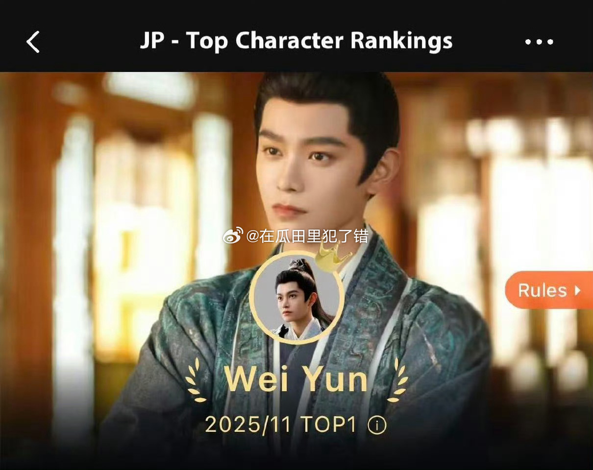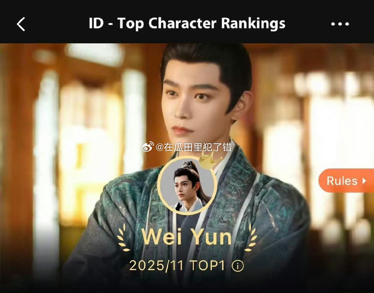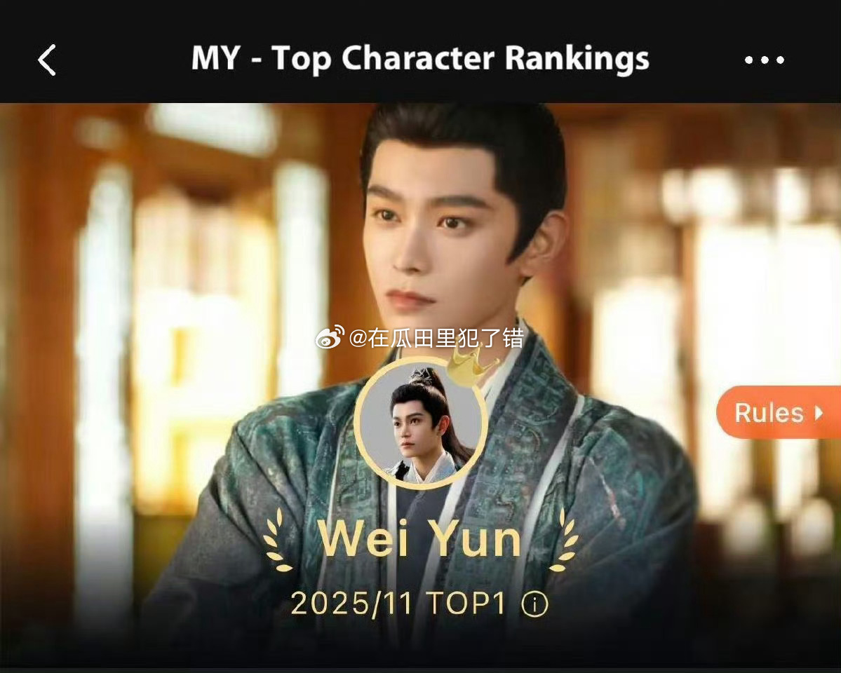 丁禹兮饰演的卫韫拿下多国十一月角色热度榜第一🏆