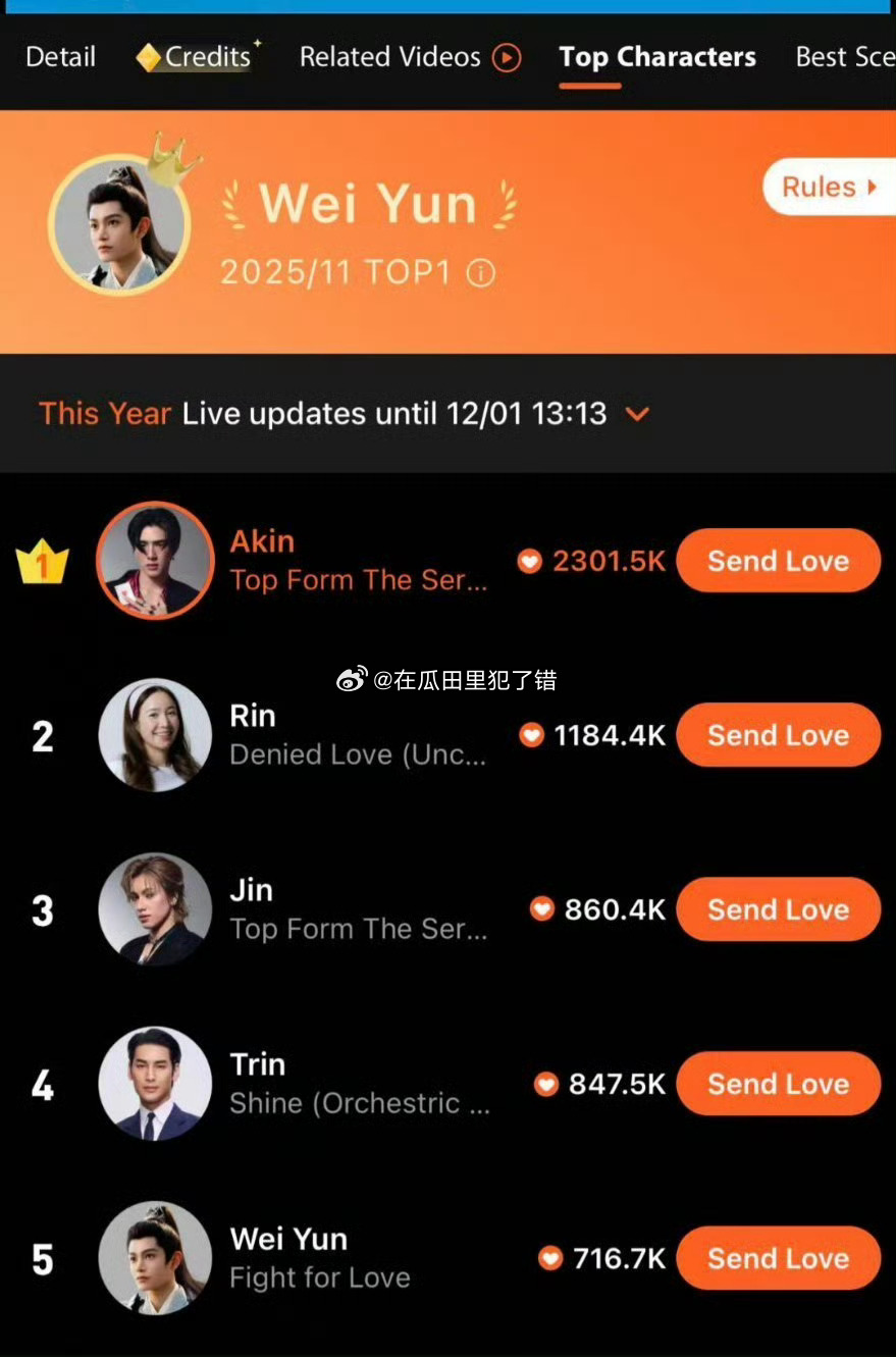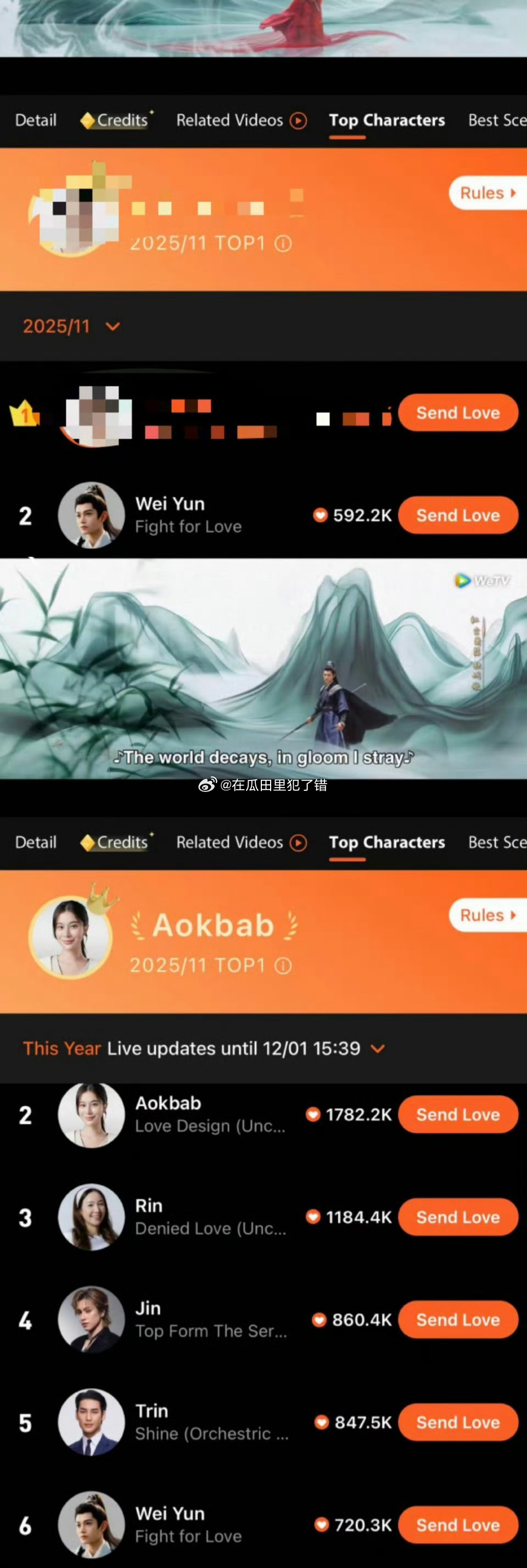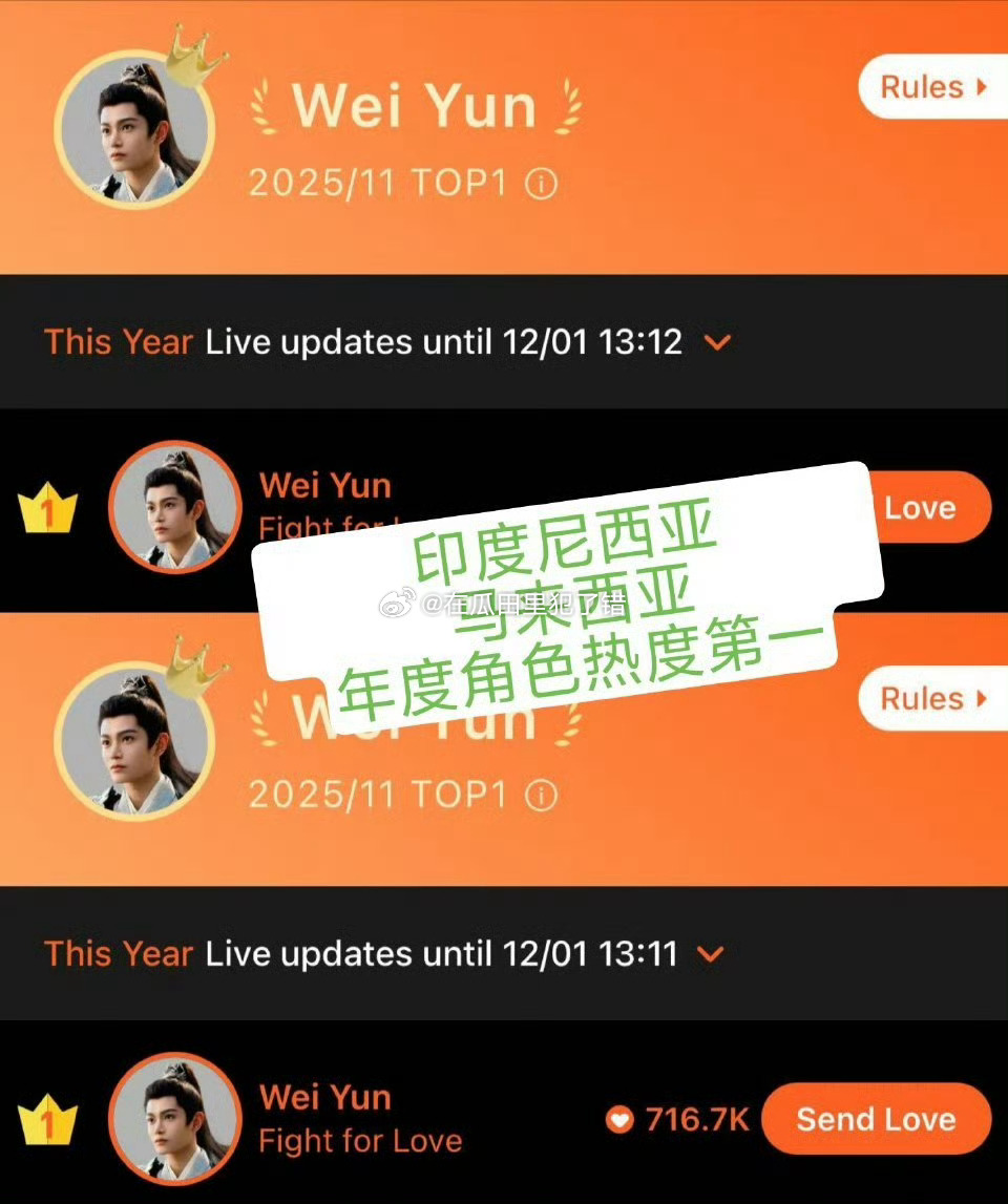 丁禹兮饰演的卫韫拿下多国十一月角色热度榜第一🏆
