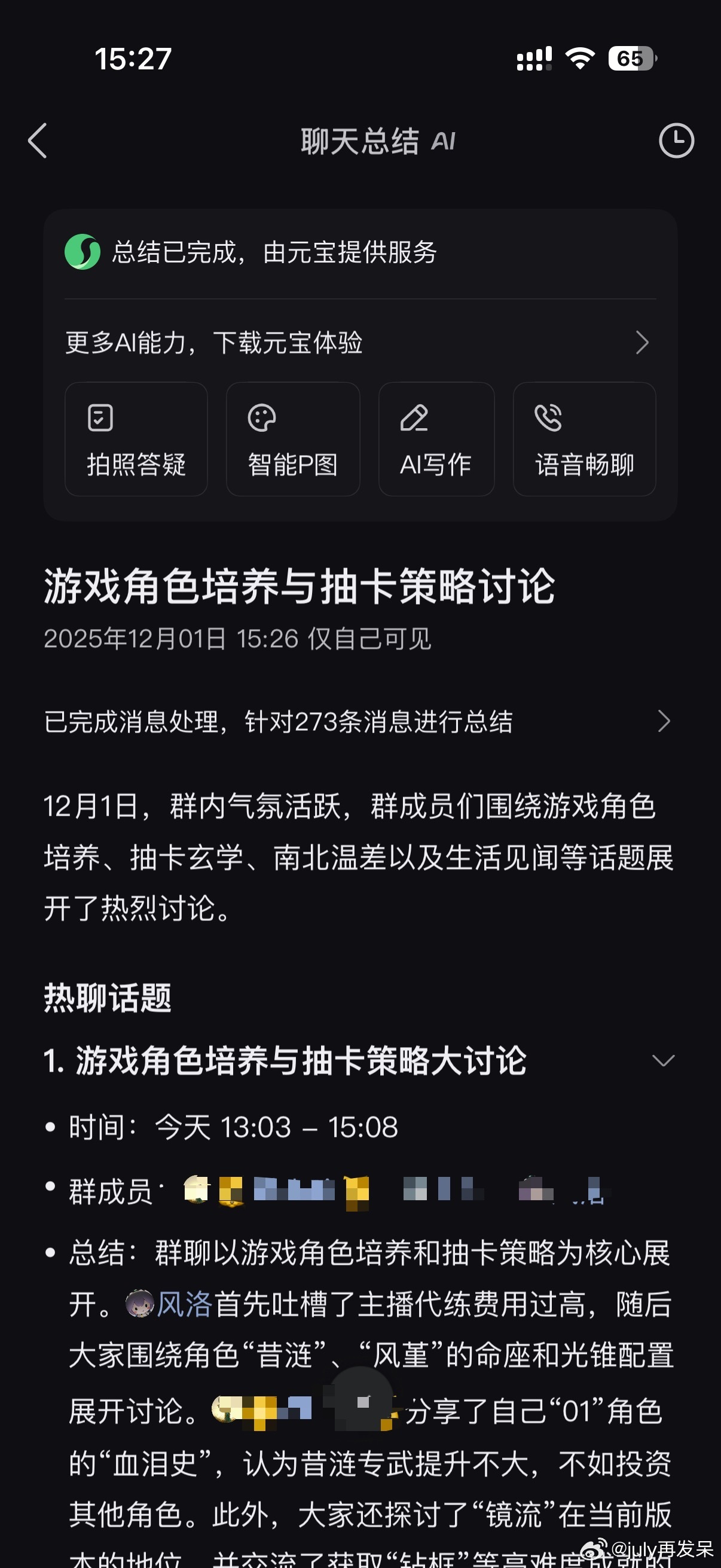 QQ群聊有一个ai总结 挺好的省的我爬楼了,微信啥时候有