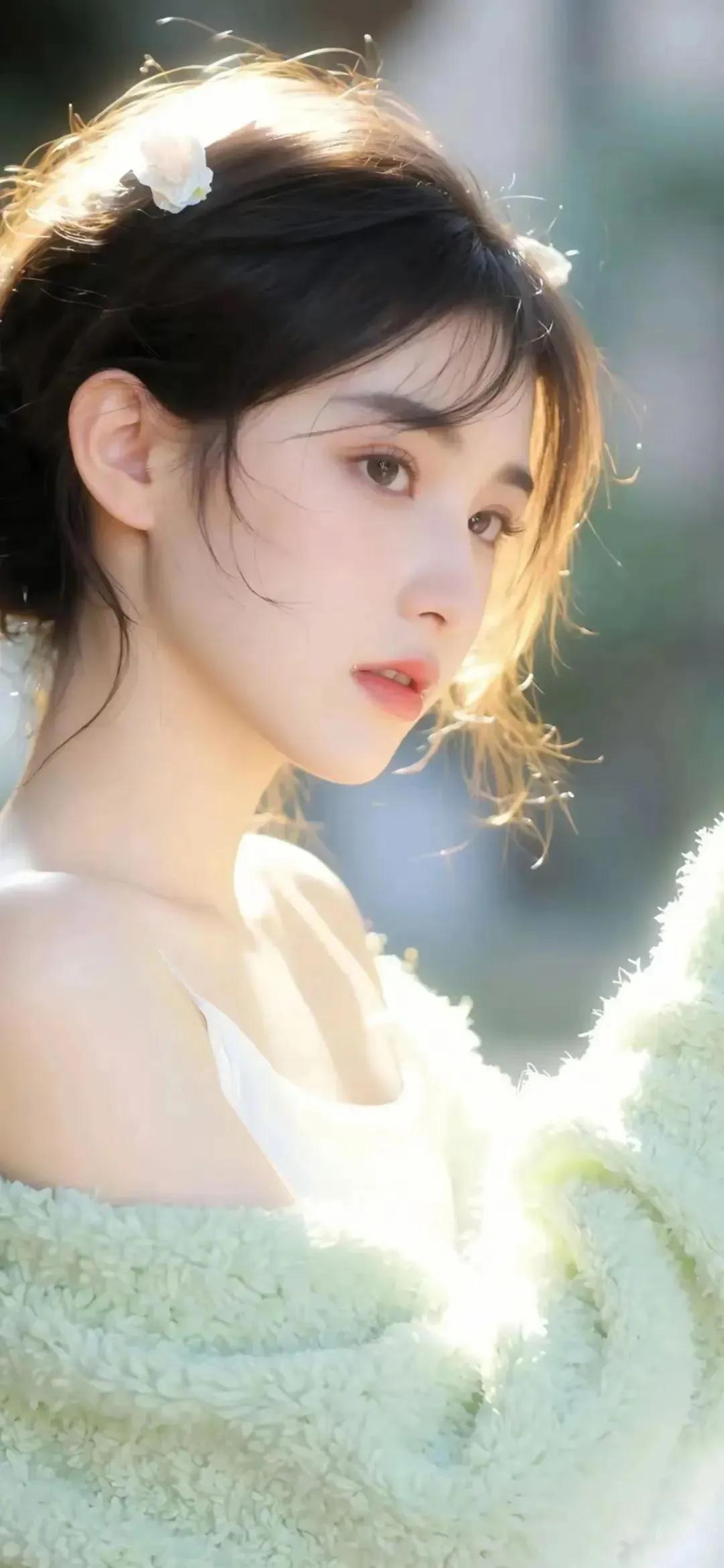 浅蓝裹着云般的纱结,唇上粉是揉进浅空里的软,发梢牵起的风都带着轻甜温柔粉发美女