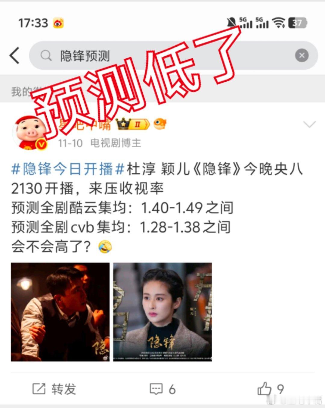 杜淳、颖儿《隐锋》收官战报!这个收视比好多黄金档收视率都高酷云集均:1.6493